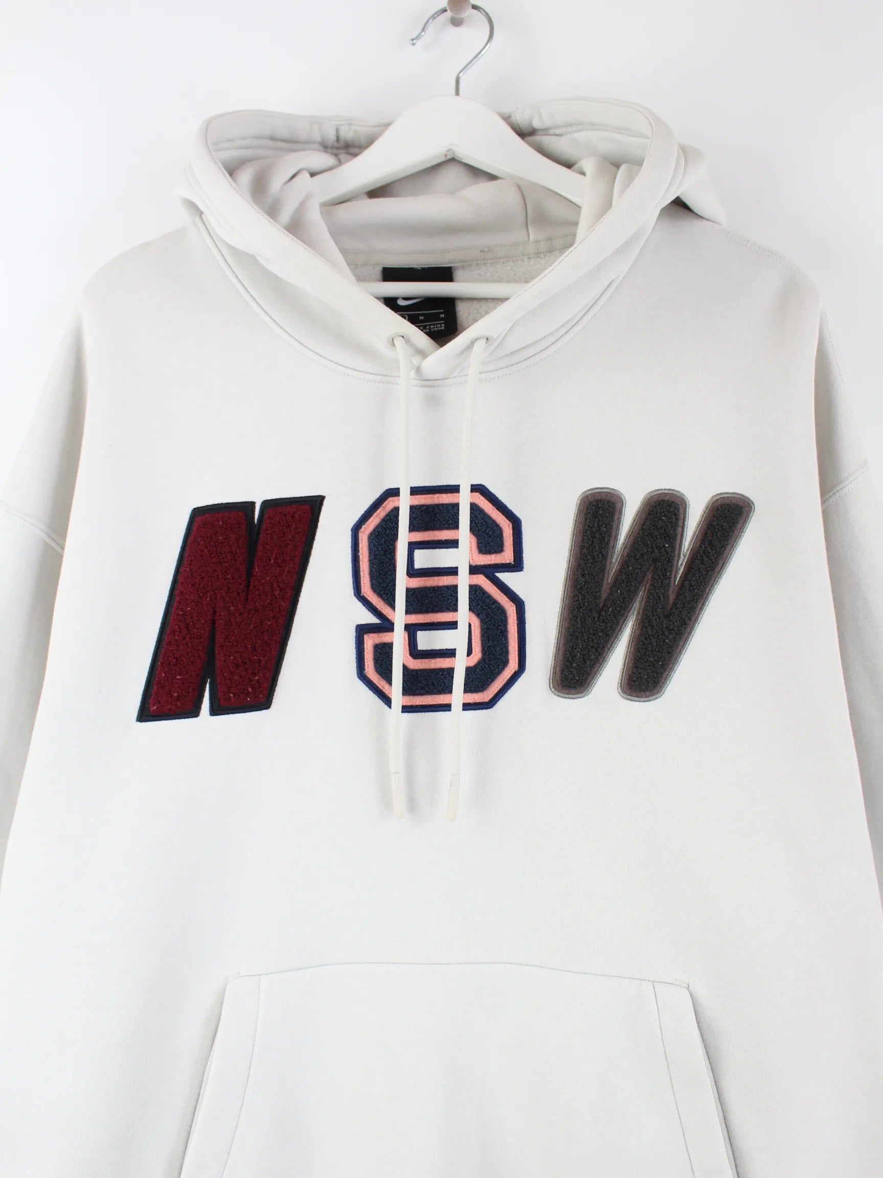 Beigefarbener Hoodie vom Brand Nike in Größe M. Er ist aus einer Baumwollmischung gemacht und in sehr gutem Zustand bei uns zu bekommen.