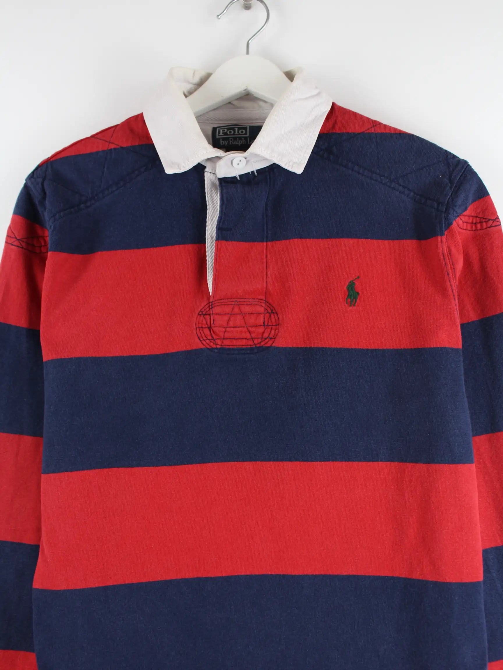 Ralph Lauren 00s Custom Fit Striped Langarm Polo Rot M