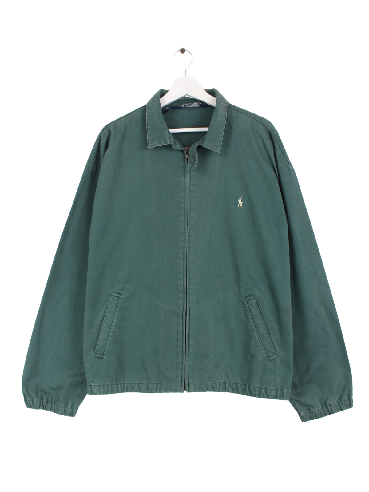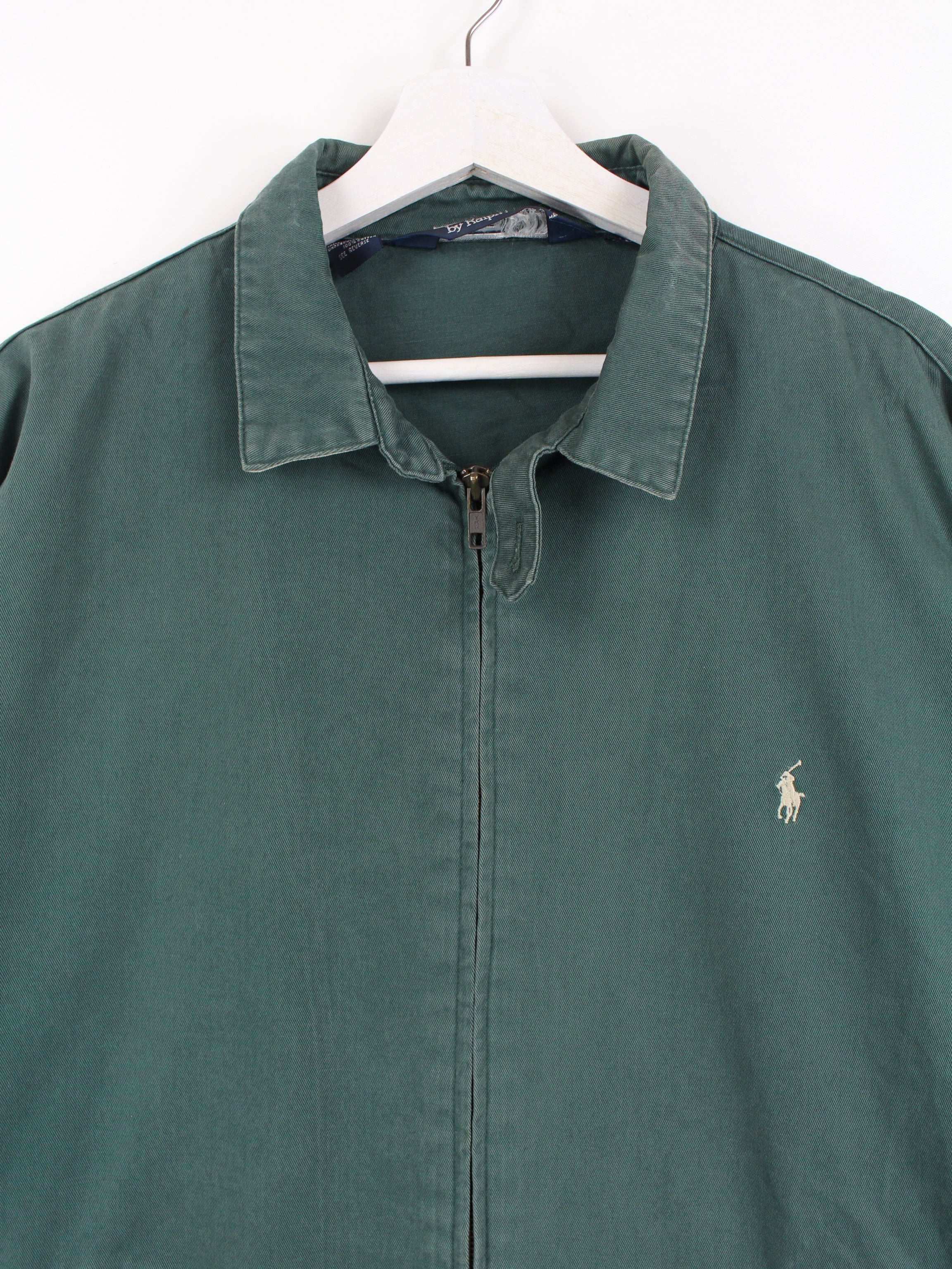 Green Polo Ralph Lauren Harrington jacket with beige tab on chest.