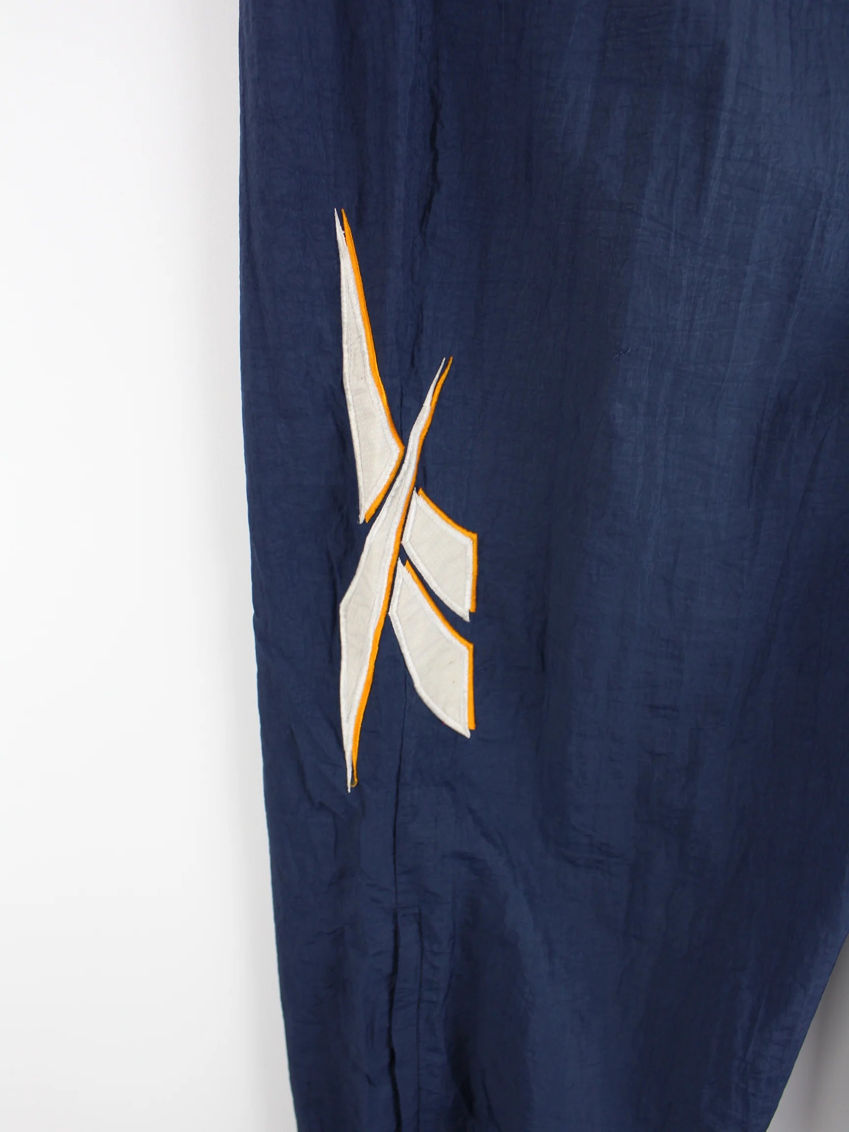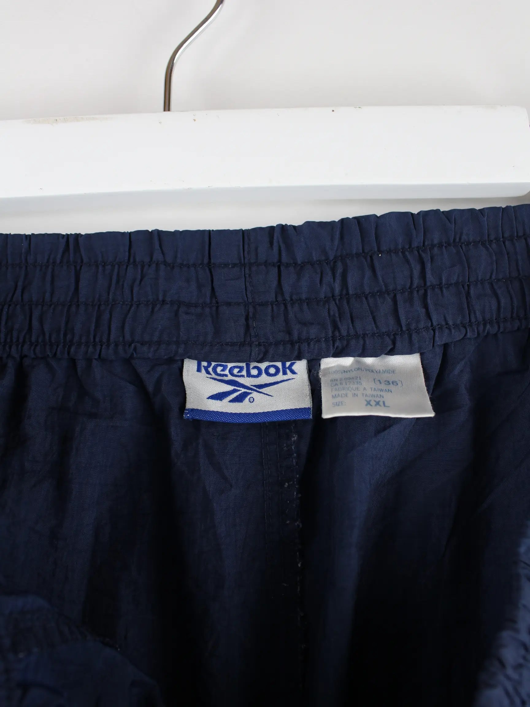 Blaue Track Pants vom Brand Reebok in Größe XXL. Sie sind aus Synthetik gefertigt und in gutem Zustand bei uns vorrätig.