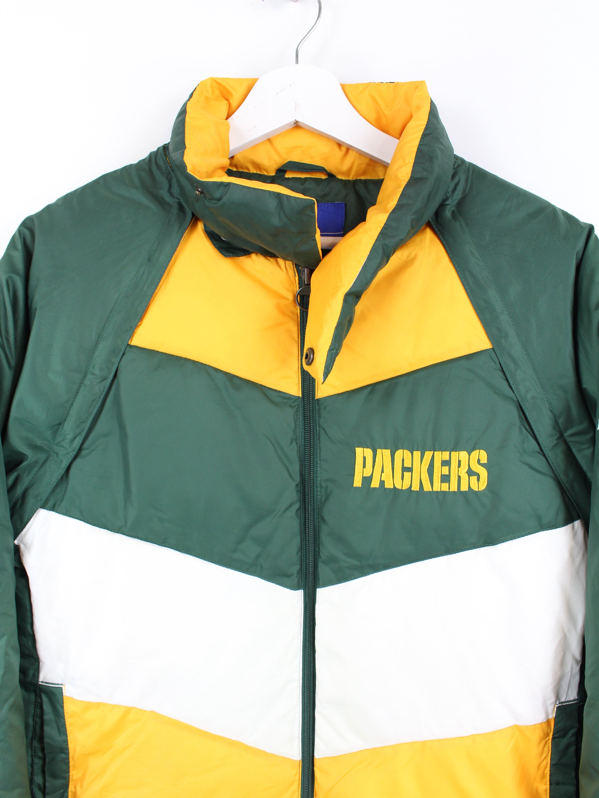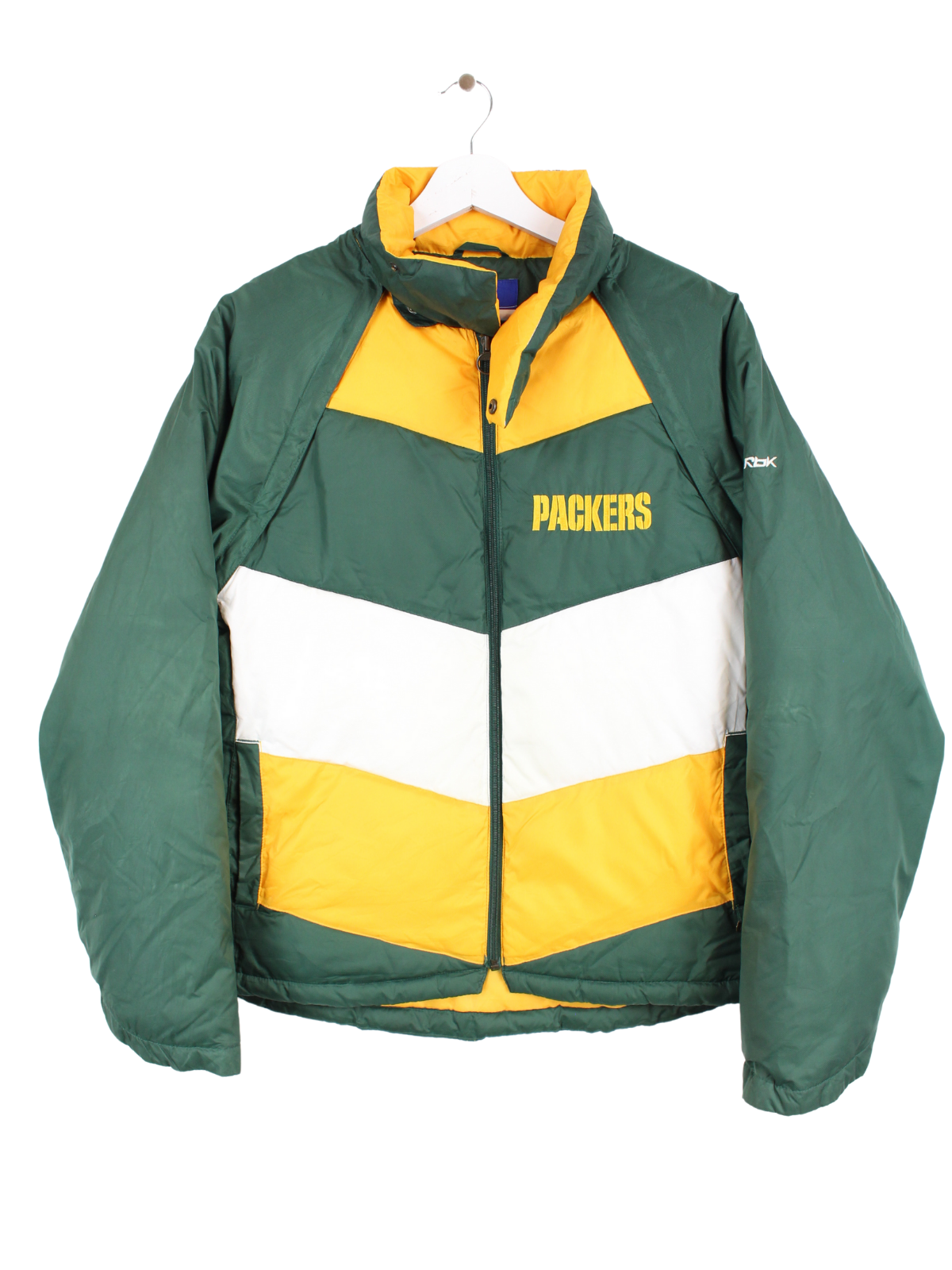 Reebok NFL Green Bay Packers Football Jacket. The jacket has detachable sleeves and can also be worn as a vest.