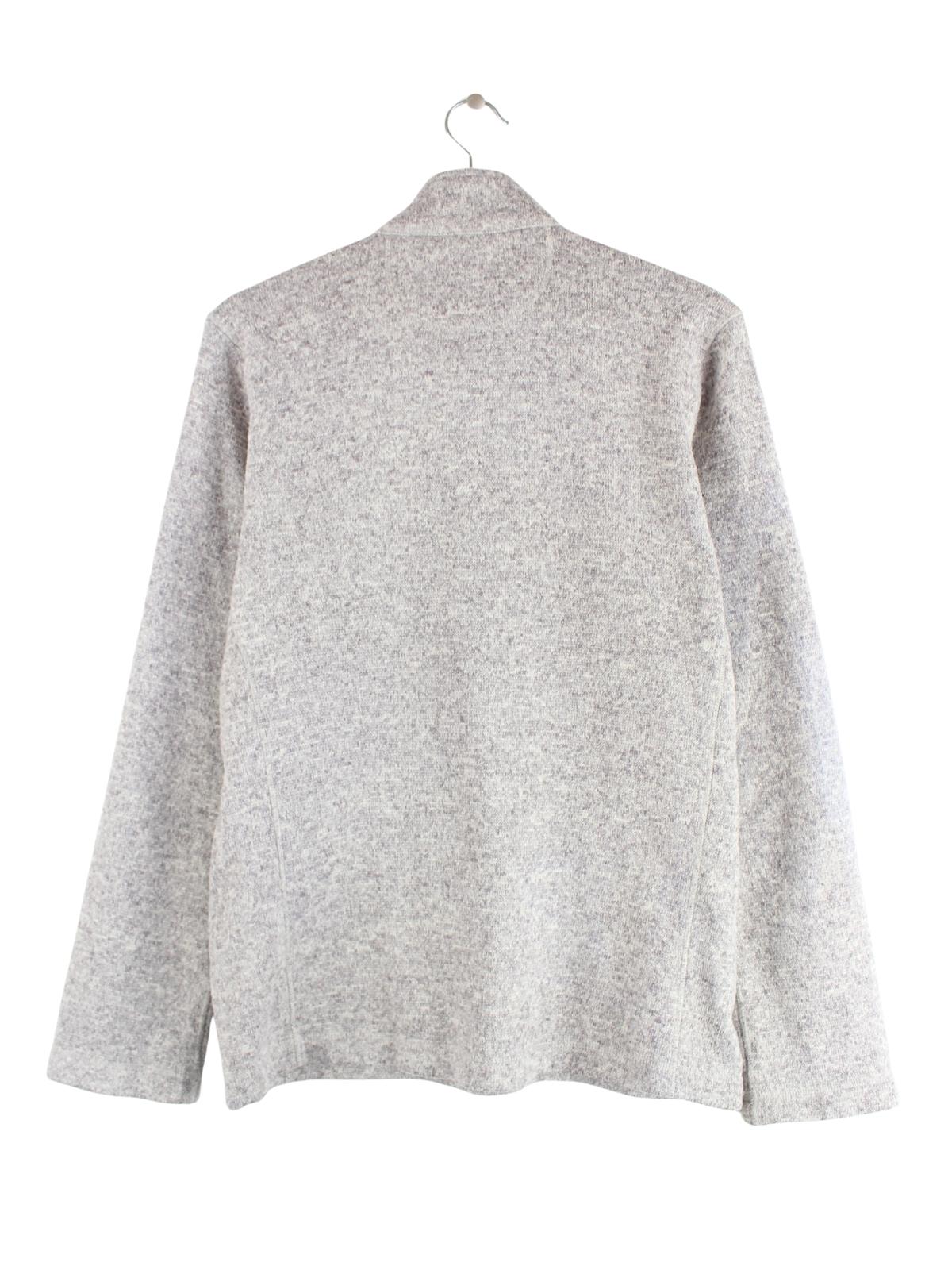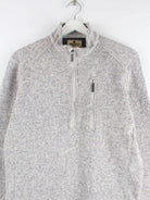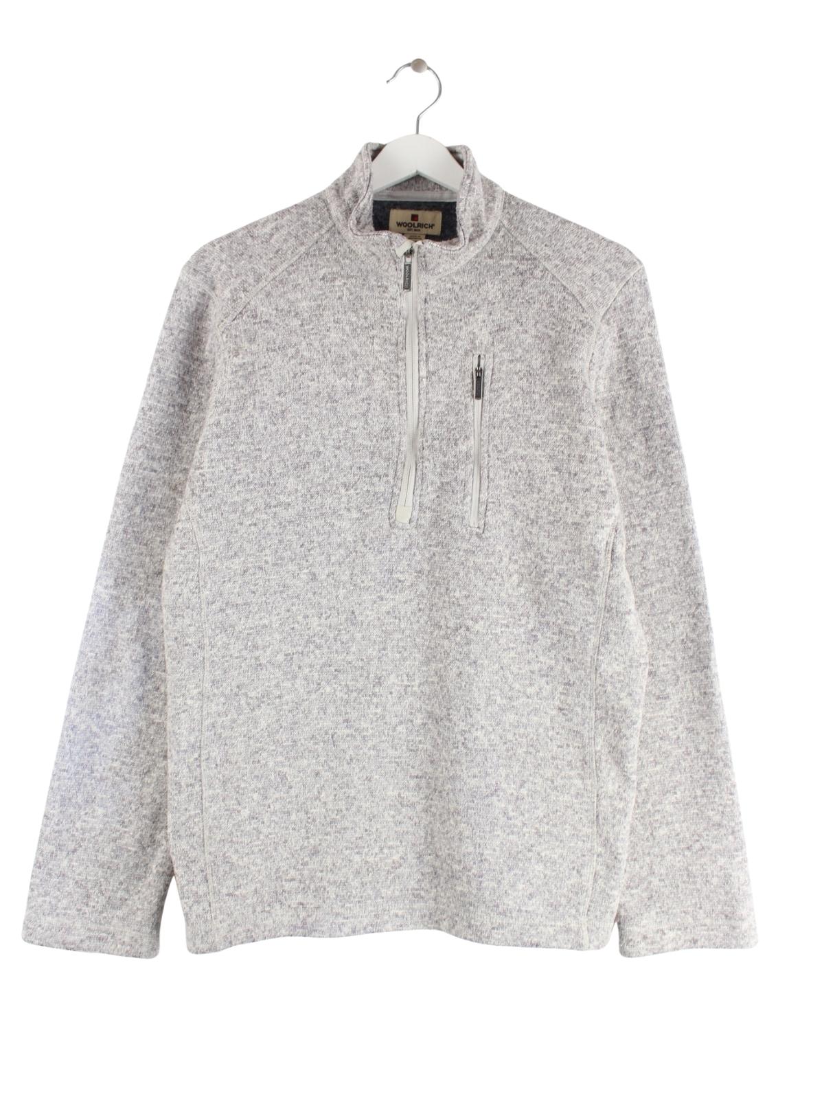 Grauer Sweater mit half Zip aus dem Hause Woolrich in Größe M. Er ist aus behaglichem Fleece hergestellt und in sehr gutem Zustand auf Lager.