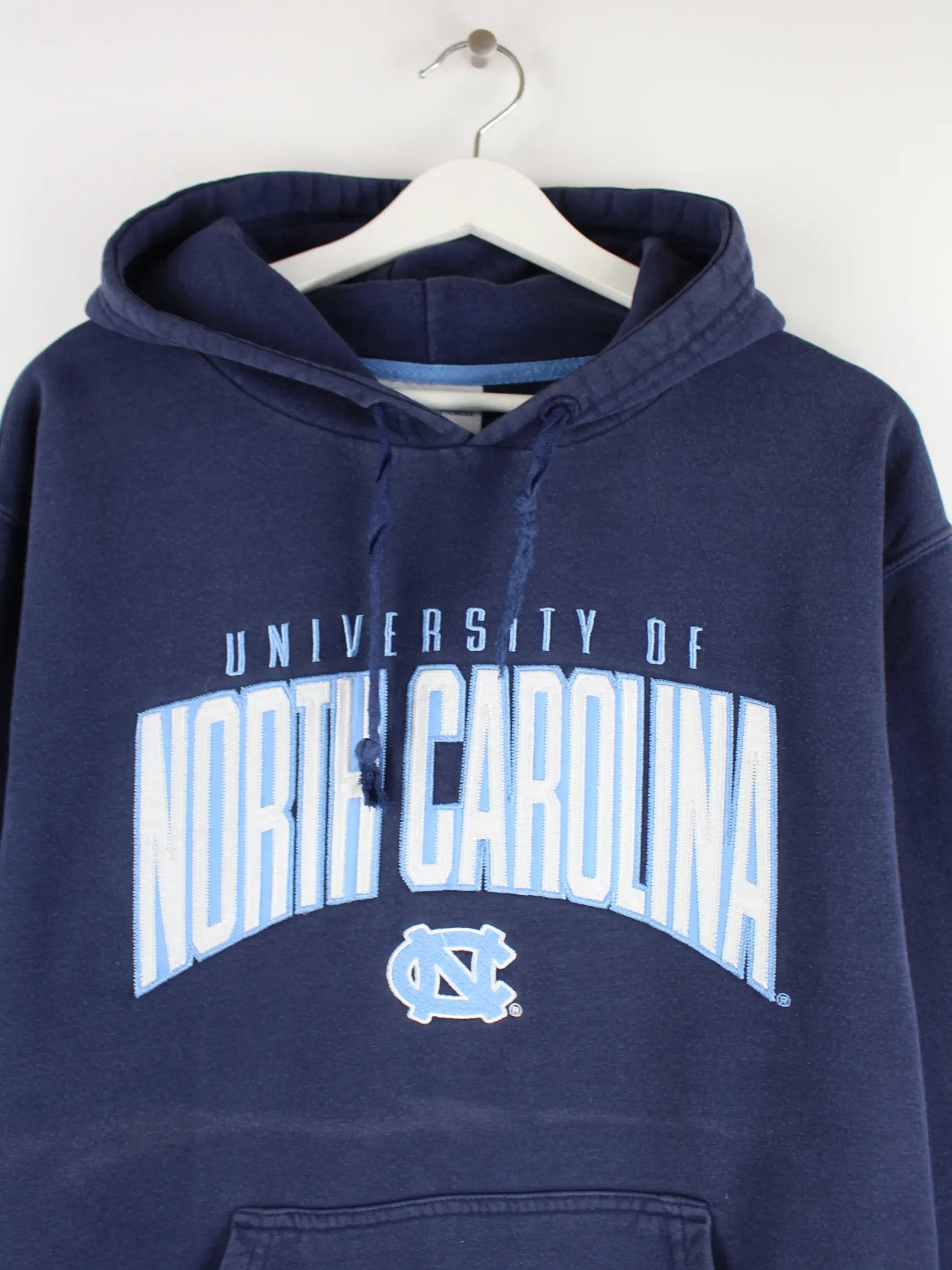 Hoodie der Marke Champion in Größe M. Er ist aus einer Baumwollmischung gemacht und in Blau lieferbar.
