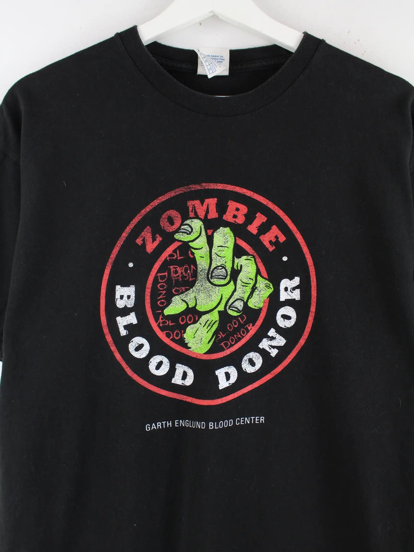 T-Shirt aus dem Hause Delta in Größe L. Es ist aus Baumwolle hergestellt und in Schwarz bei uns zu bekommen. Mit chiquem Zombie Print.