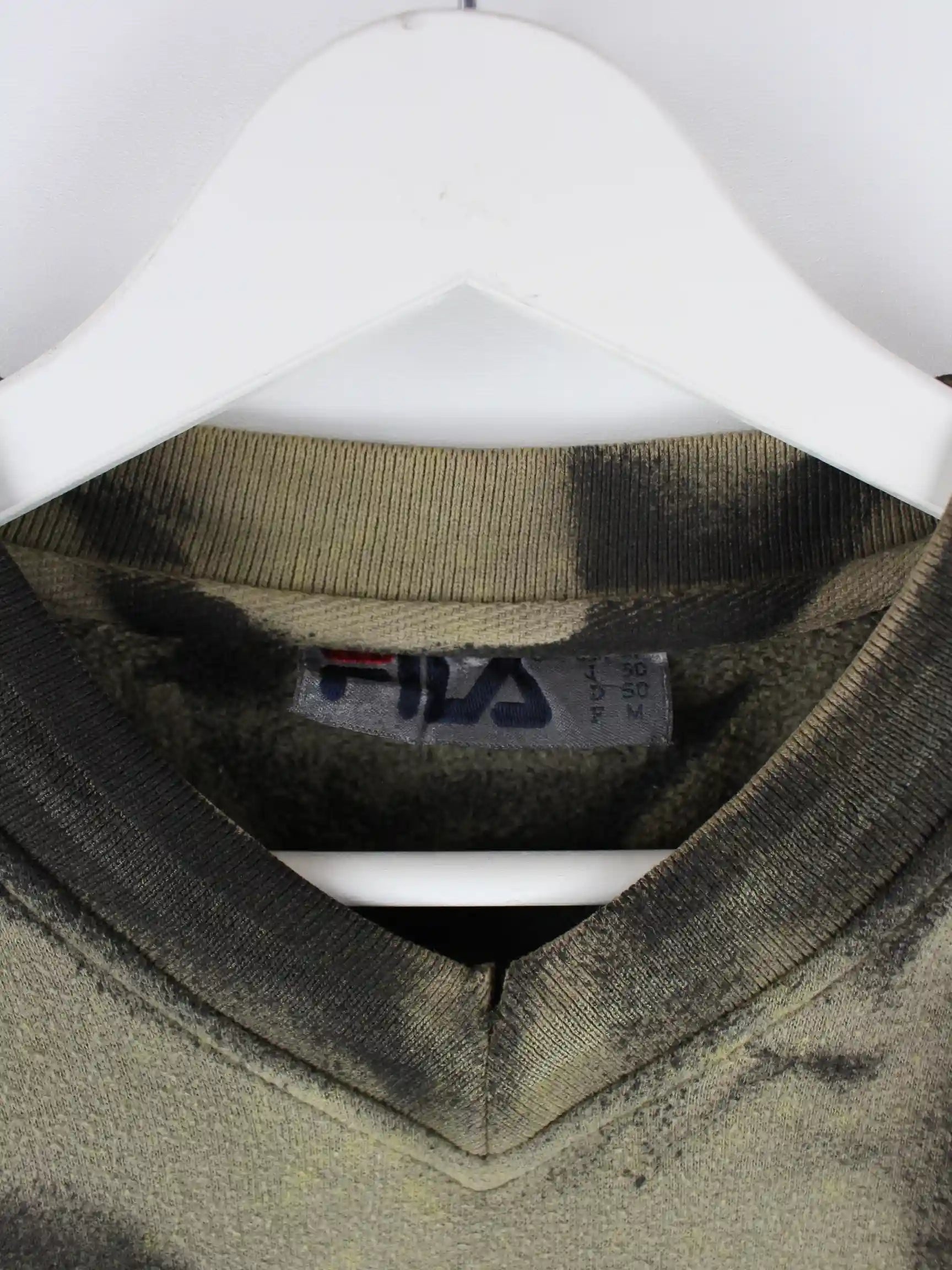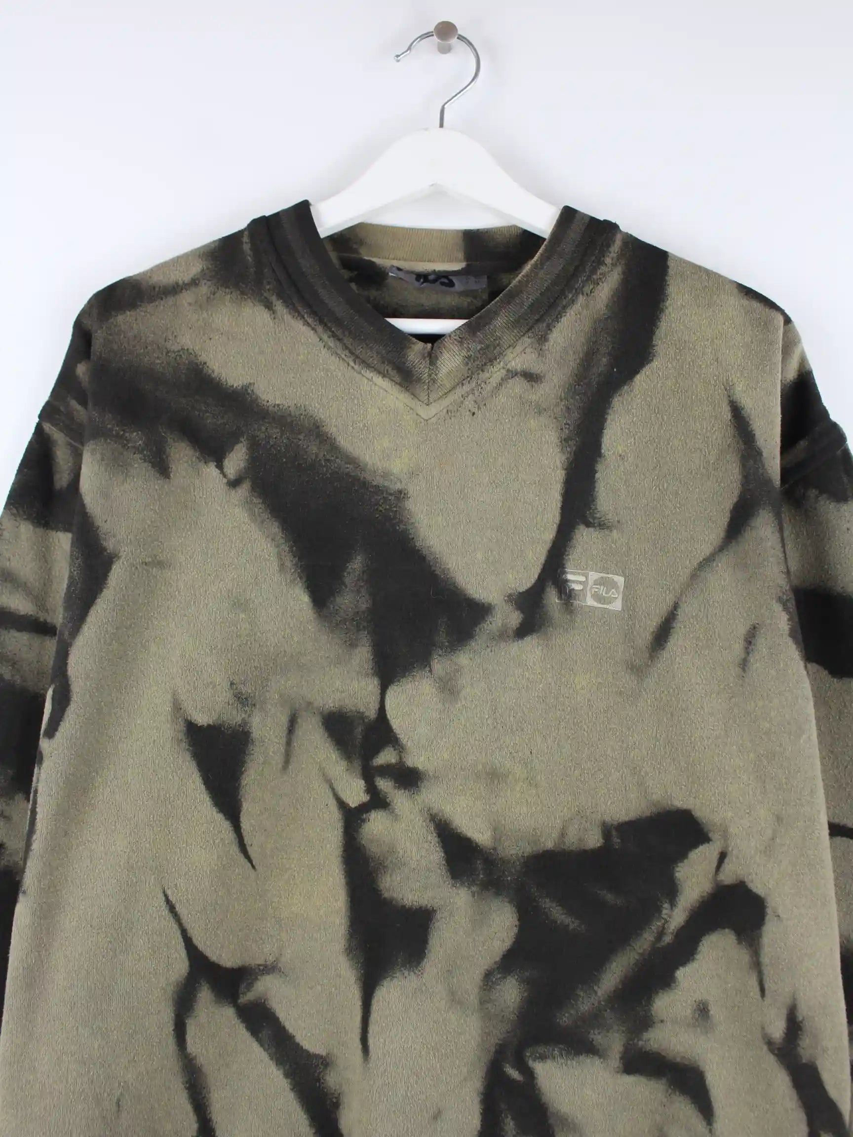 Grüner Sweater vom Label Fila in Größe M. Er ist aus einer Baumwollmischung gefertigt und in gutem Zustand im Bestand.