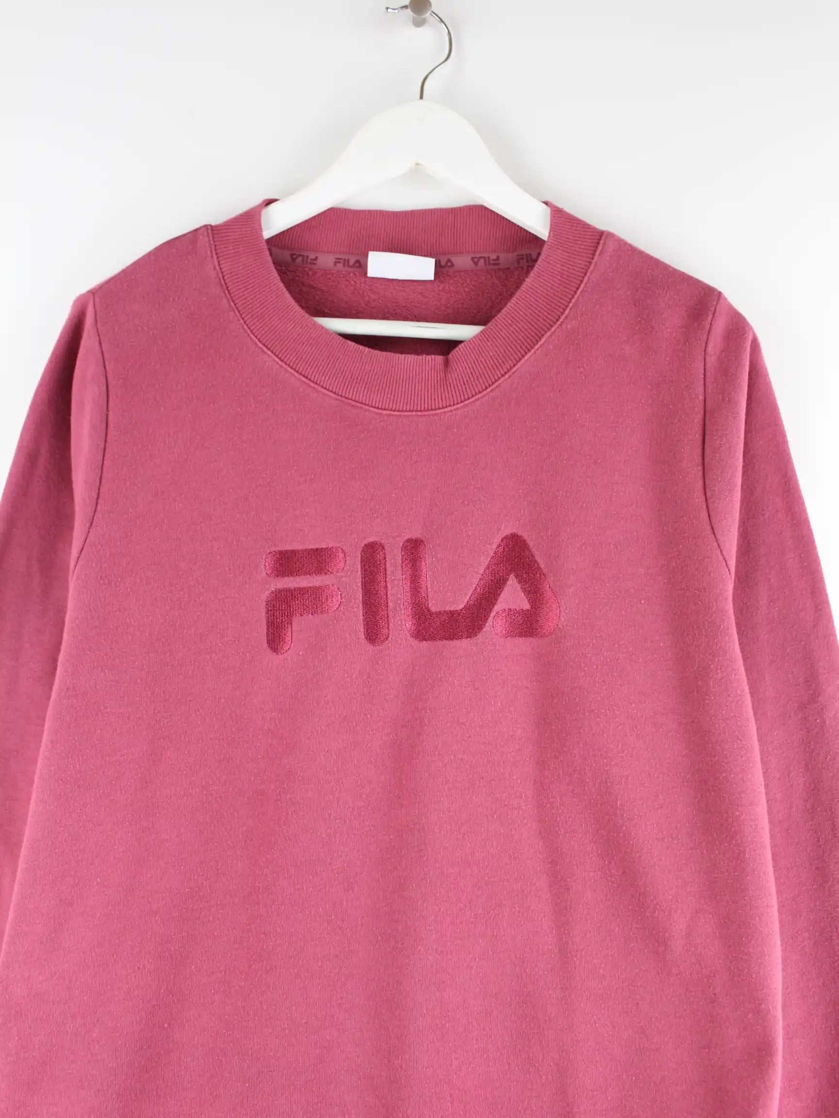 Roter Sweater der Brand Fila in Größe L. Er ist aus einer Baumwollmischung angefertigt und in sehr gutem Zustand lieferbar.