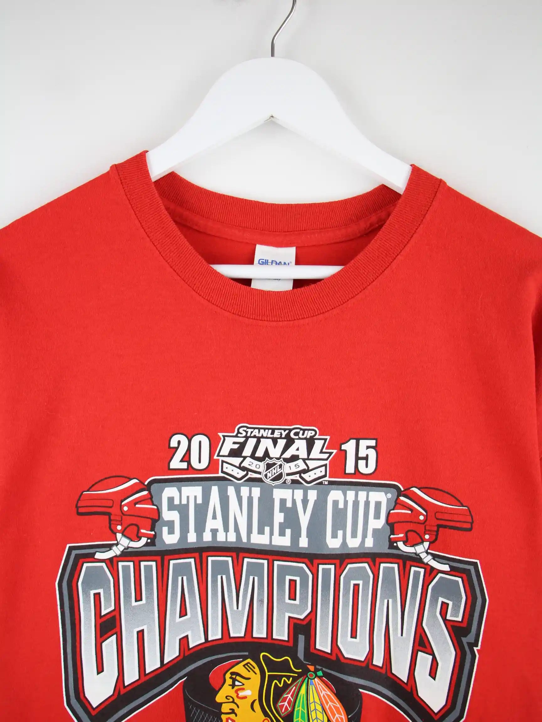 Gildan 2015 Stanley Cup Champions Chicago Blackhawks Print T-Shirt Rot XL