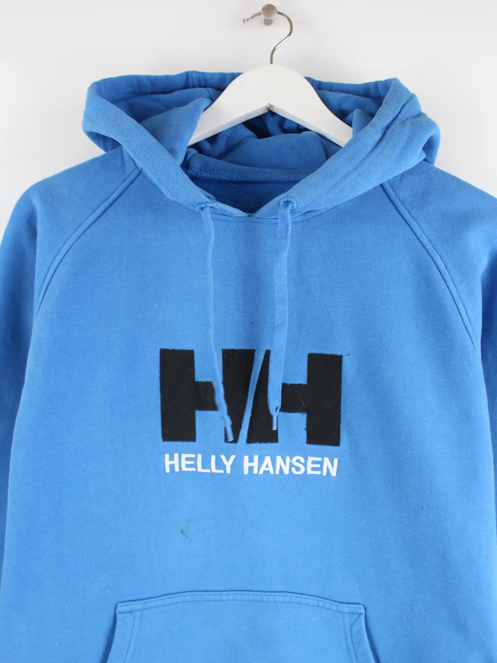 Blauer Hoodie vom Brand Helly Hansen in Größe XS. Er ist aus einer Baumwollmischung gemacht. Den Zustand würden wir als 'In Ordnung' bezeichnen (vergl. Bilder).