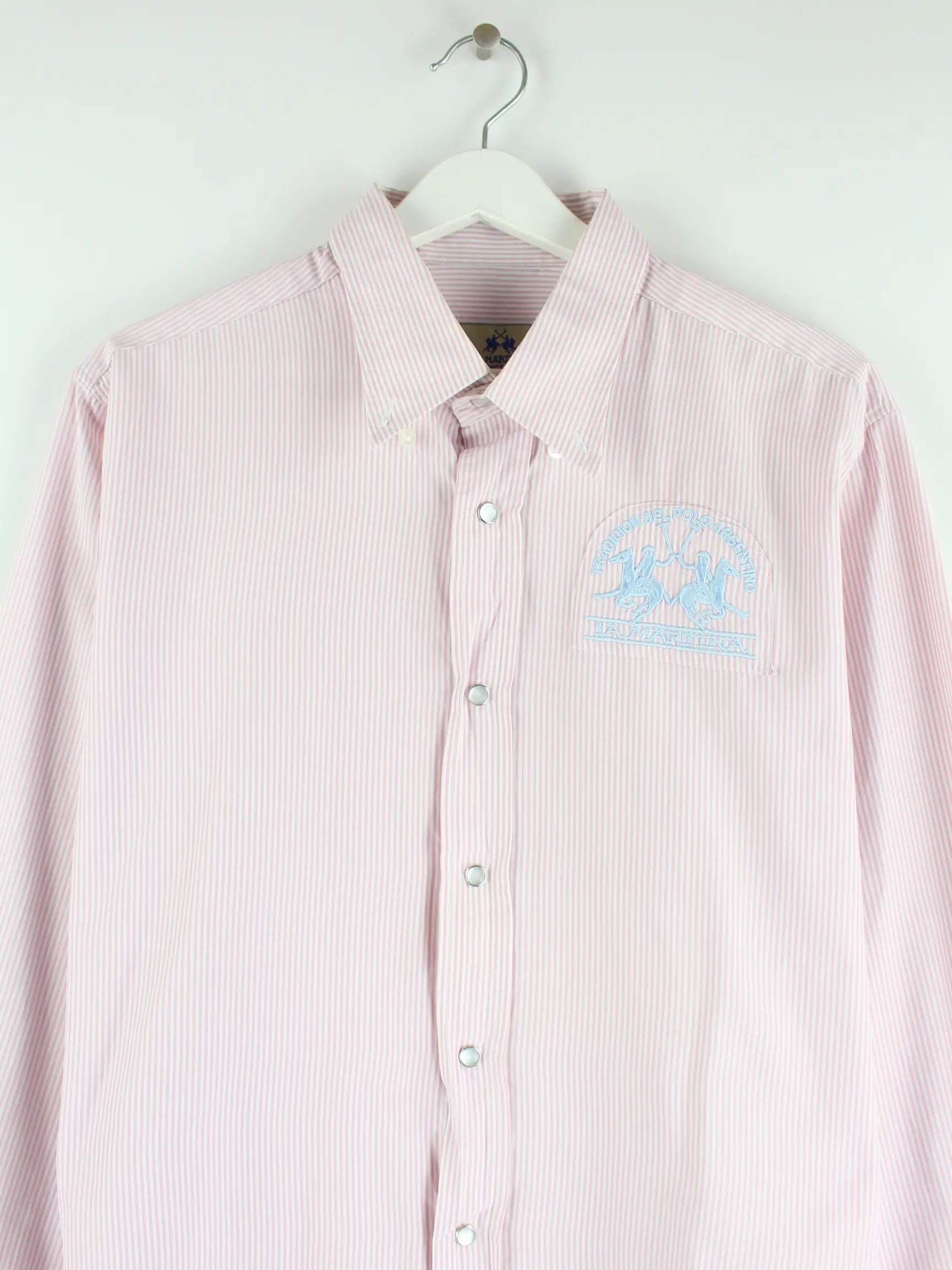 Rosafarbenes Hemd vom Label La Martina in Größe XL. Es ist aus Baumwolle gefertigt und in sehr gutem Zustand bei uns vorrätig.