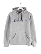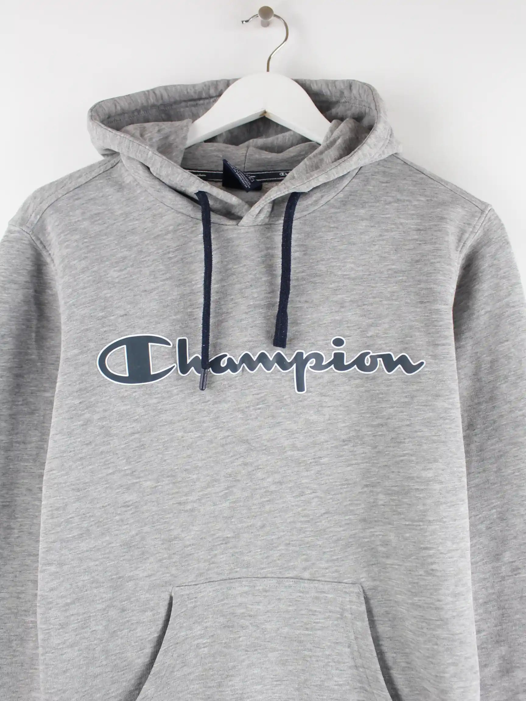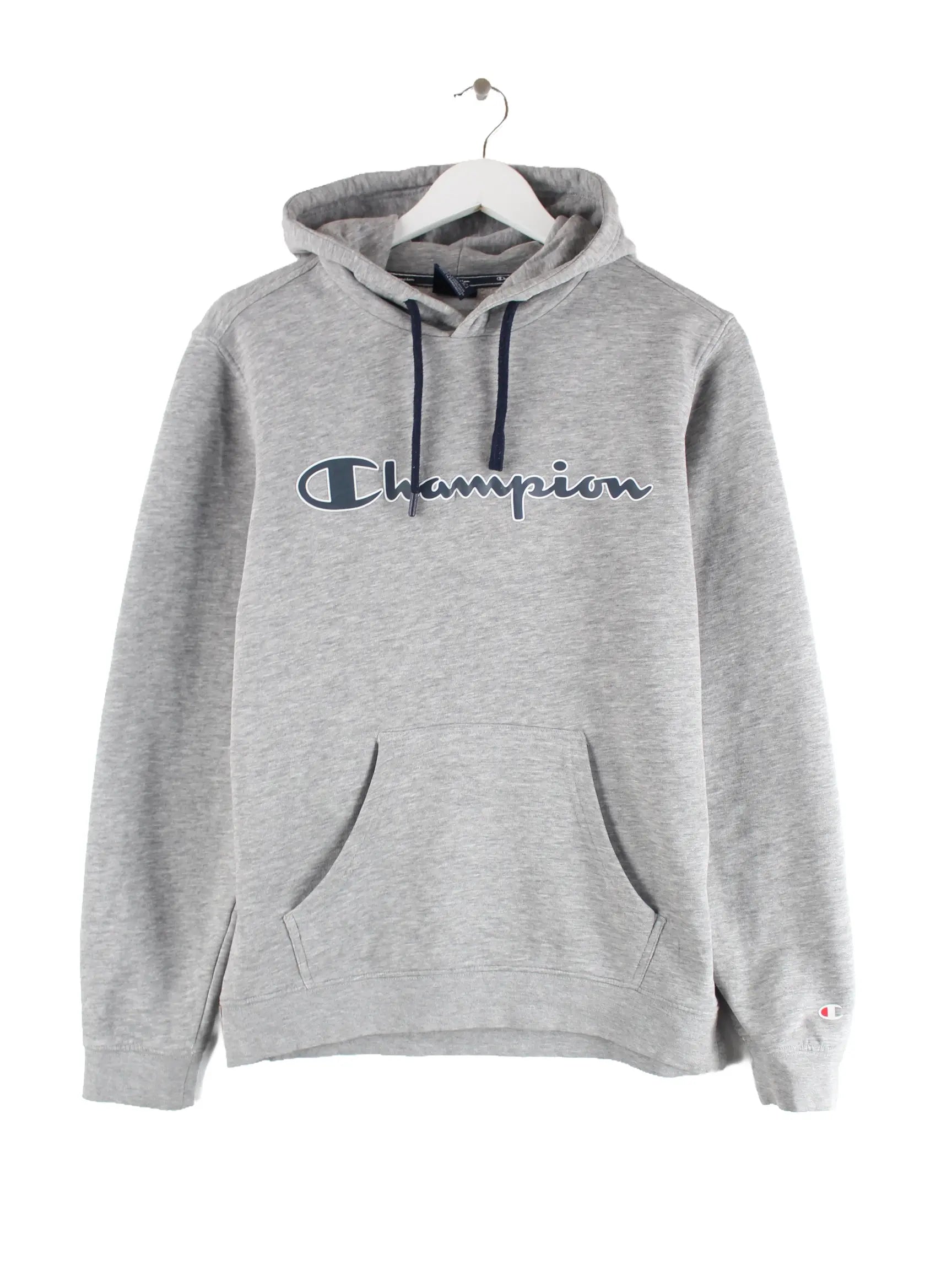 Grauer Hoodie der Marke Champion in Größe S. Er ist aus einer Baumwollmischung produziert und in sehr gutem Zustand zu bekommen.