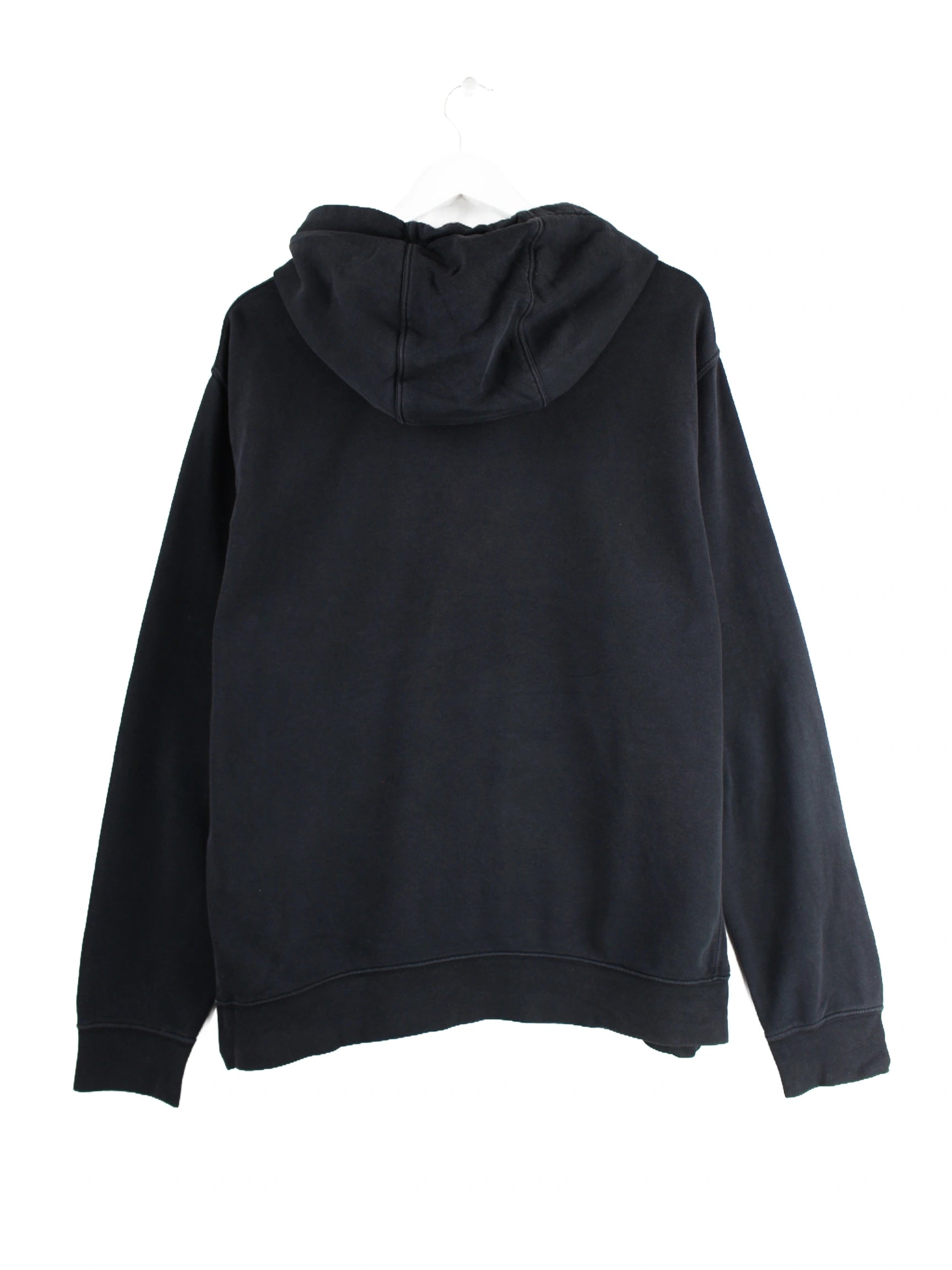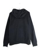 Schwarzer Hoodie vom Label Nike in Größe L. Er ist aus einer Baumwollmischung gemacht und in gutem Zustand bei uns vorrätig. Mit seltenem Logo Print.