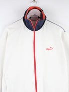 Beigefarbene Trainingsjacke von Puma in Größe M. Sie ist aus Synthetik hergestellt. Den Zustand würden wir als 'In Ordnung' bezeichnen (vergl. Bilder).
