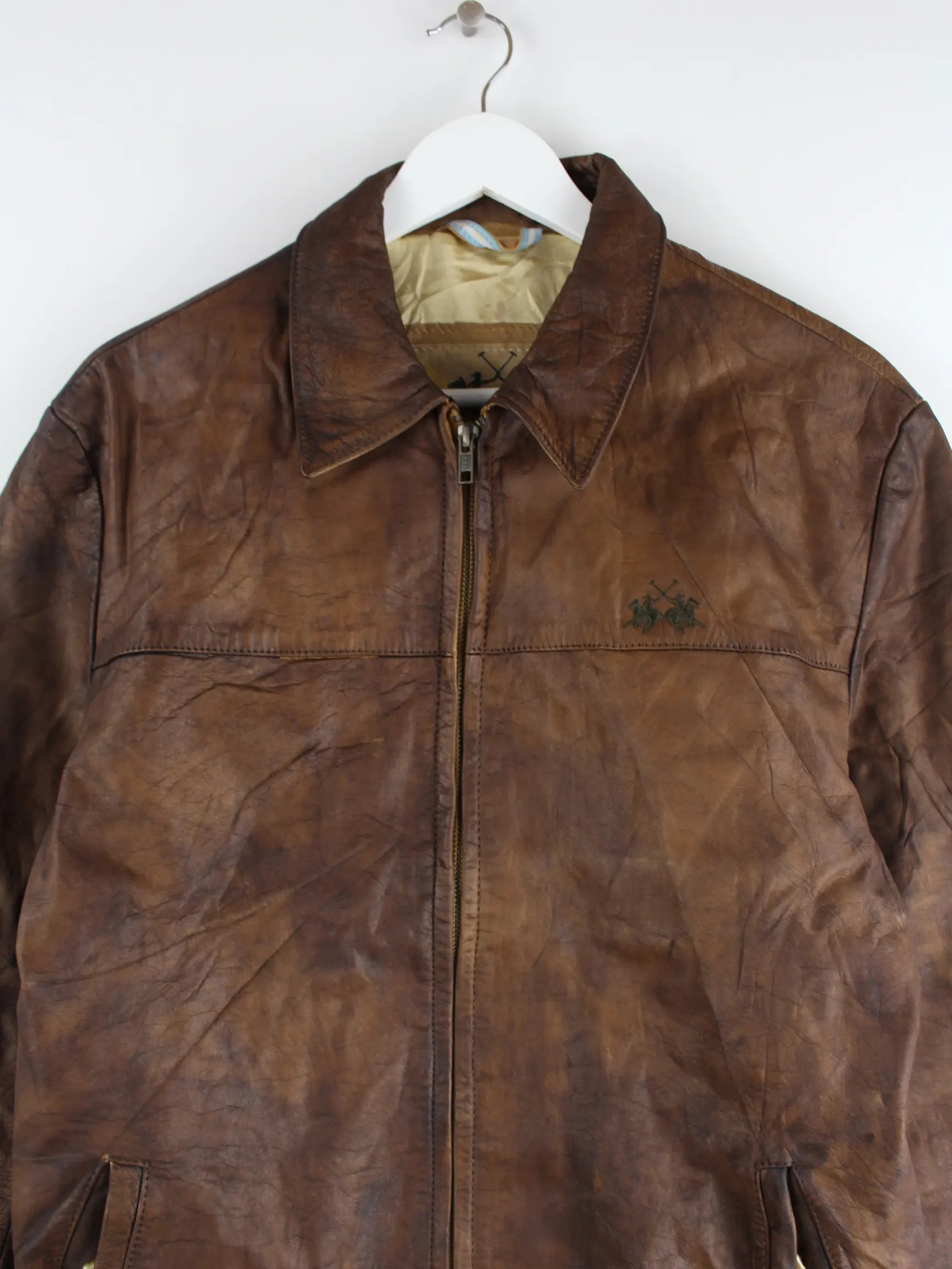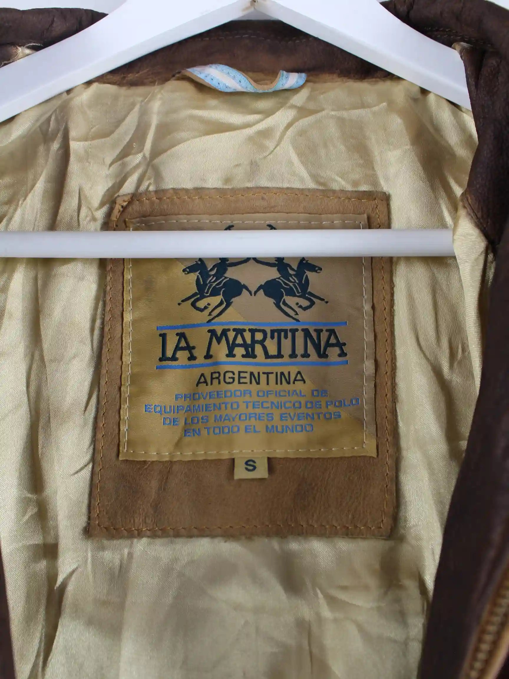 Jacke vom Label La Martina in Größe S. Sie ist aus Leder gefertigt und in Braun bei uns zu bekommen.
