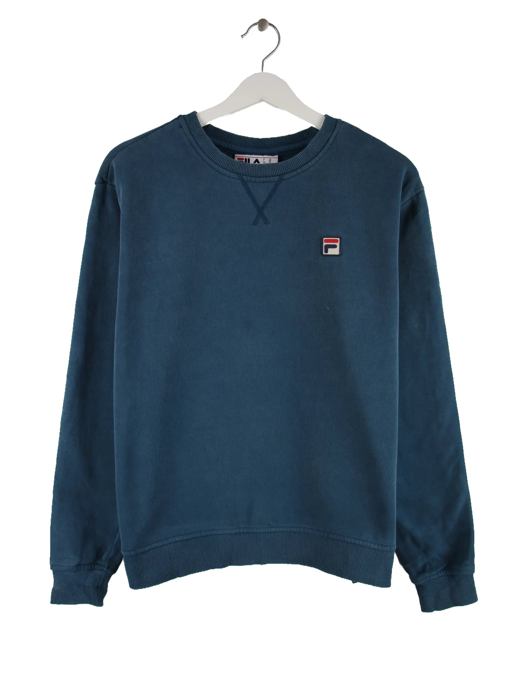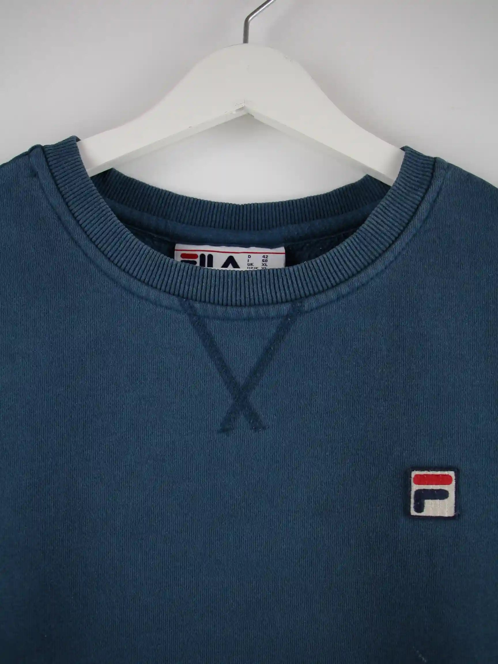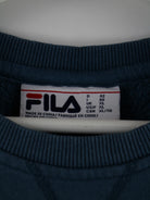 Blauer Sweater der Marke Fila in Größe L. Er ist aus einer Baumwollmischung hergestellt. Den Zustand würden wir als 'In Ordnung' bezeichnen (vergl. Bilder).