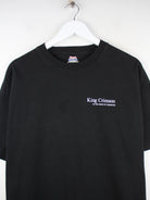 Schwarzes T-Shirt der Marke Hanes in Größe XL. Es ist aus Baumwolle gefertigt und in gutem Zustand vorrätig. Mit seltenem T Print.