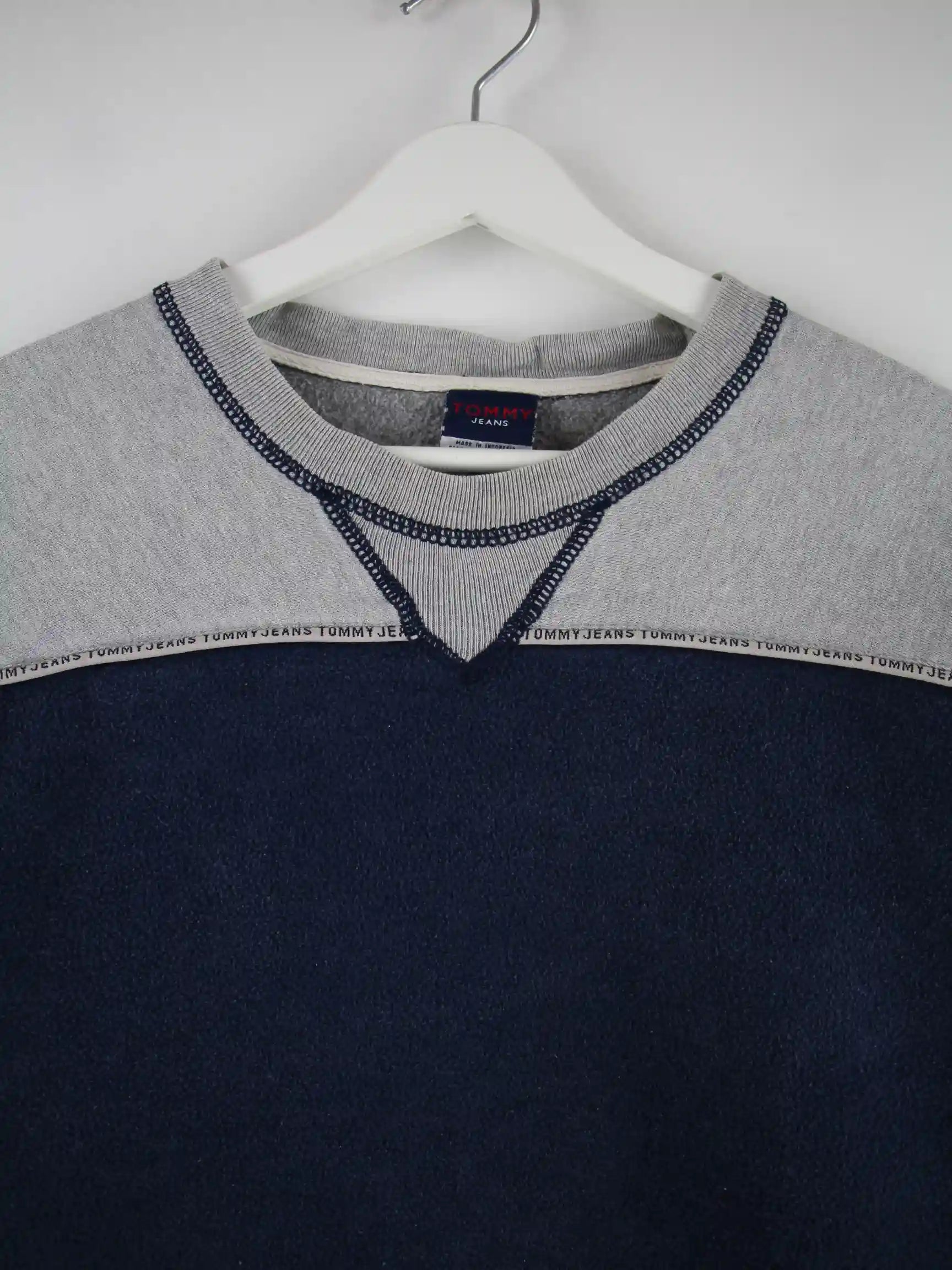 Sweater der Marke Tommy Hilfiger in Größe M. Er ist aus einer Baumwollmischung angefertigt und in Blau lieferbar.