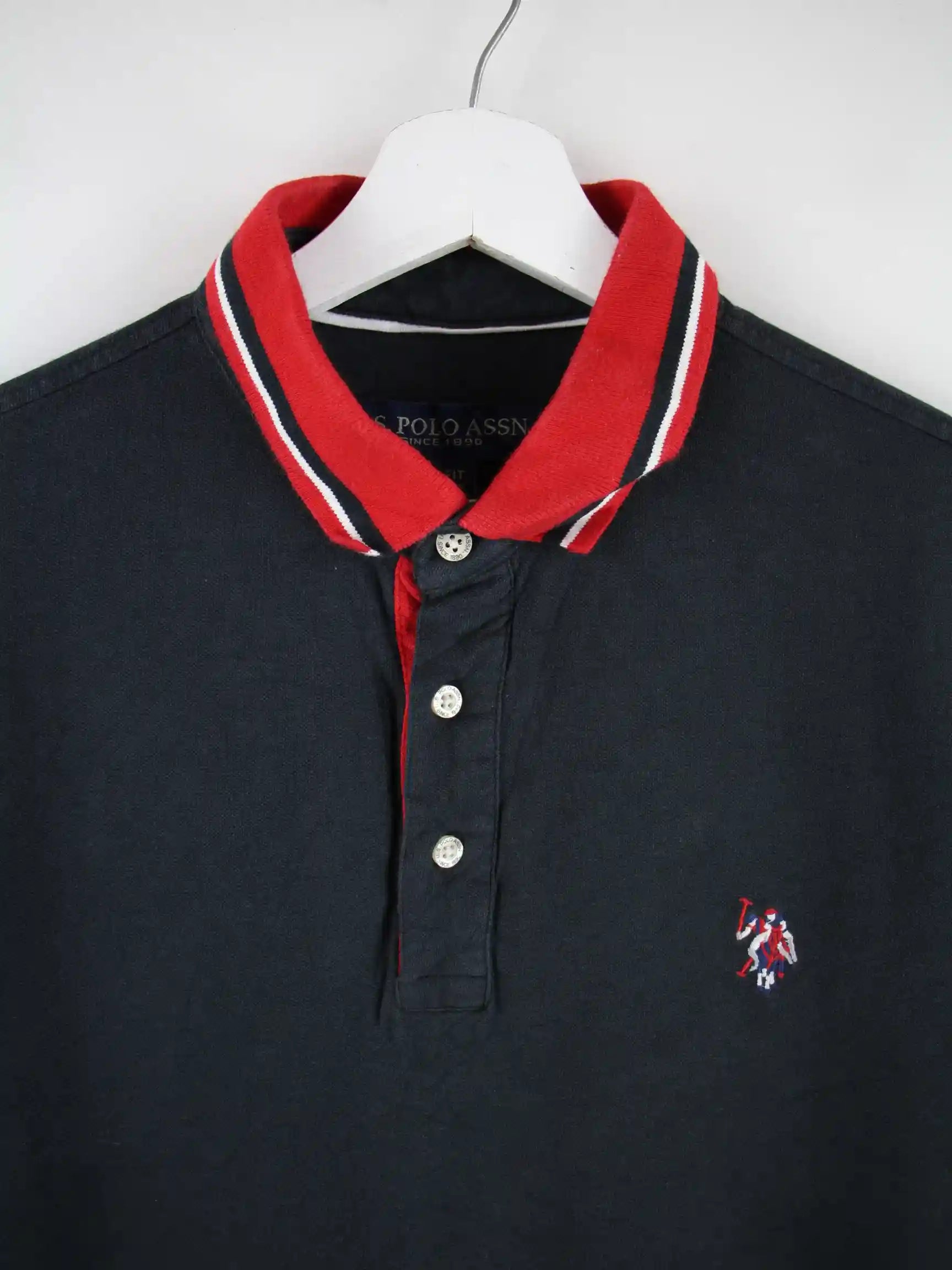 Schwarzes Poloshirt von U.S. Polo ASSN. in Größe M. Es ist aus Baumwolle angefertigt und in gutem Zustand im Bestand.