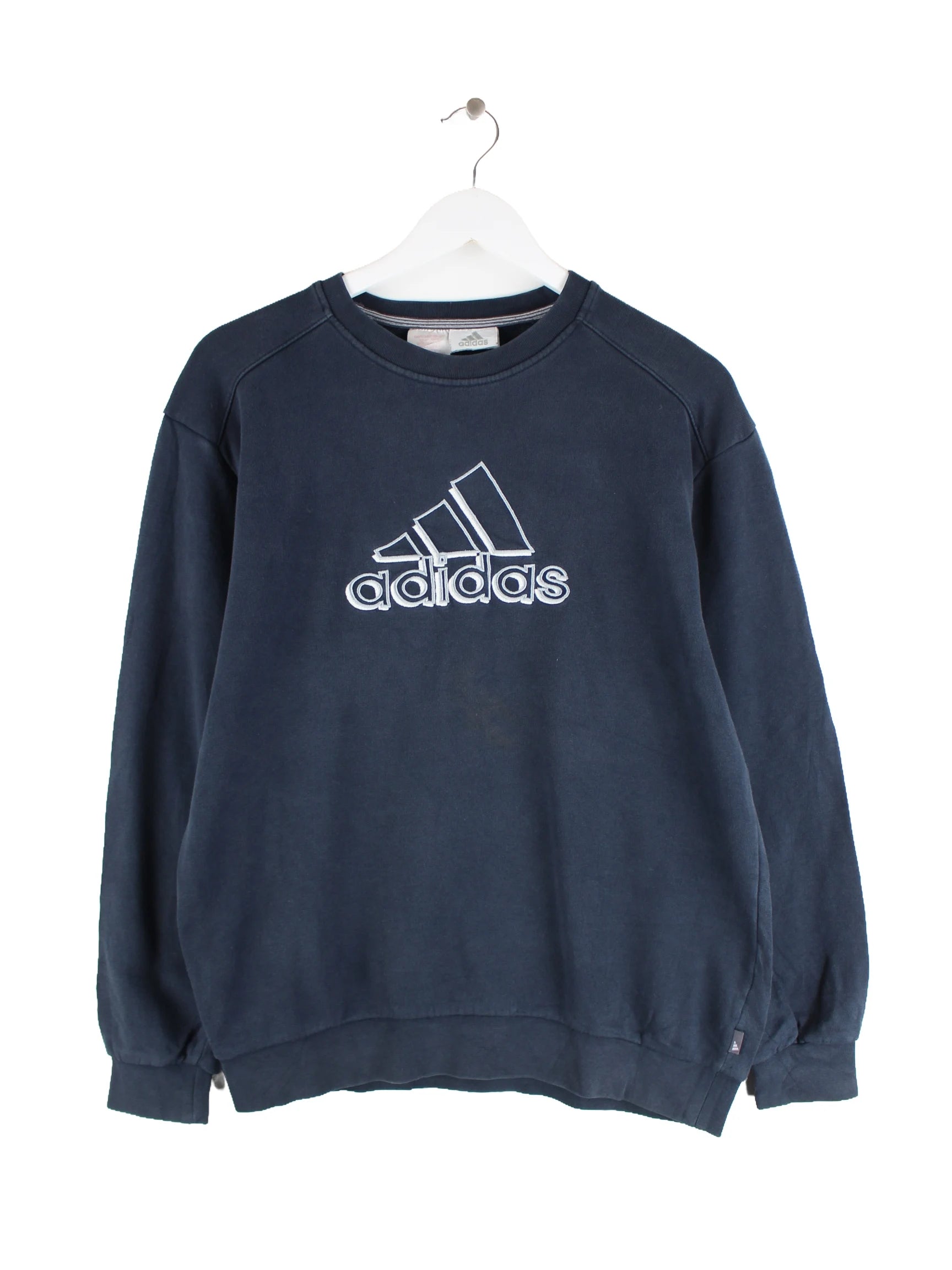 Blauer Sweater vom Label Adidas in Größe XS. Er ist aus einer Baumwollmischung gemacht und in gutem Zustand vorrätig.