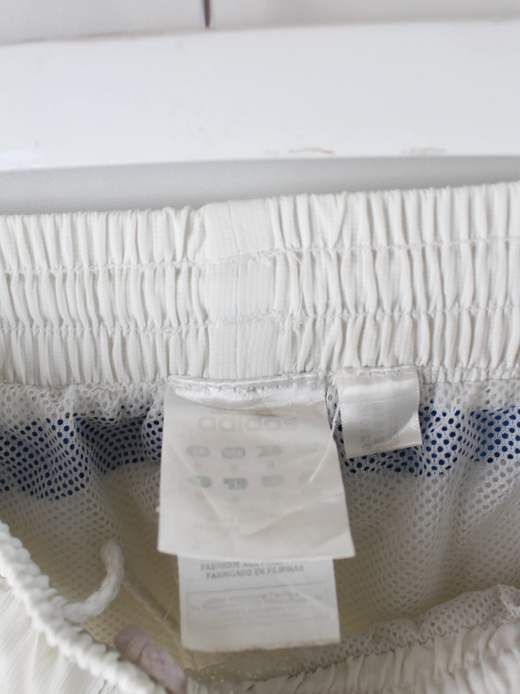 Weiße Track Pants der Marke Adidas in Größe L. Sie sind aus Synthetik hergestellt und in sehr gutem Zustand auf Lager.