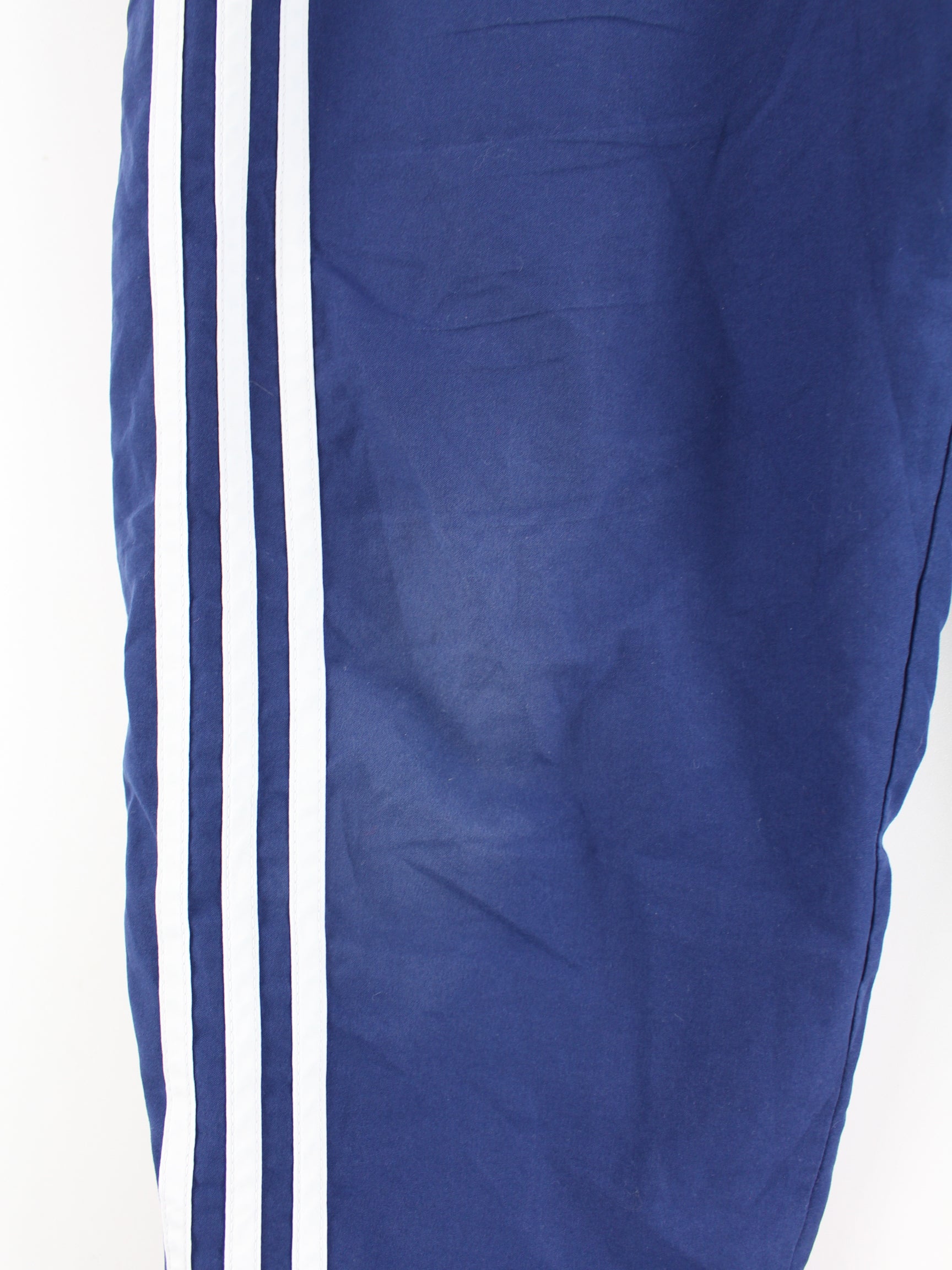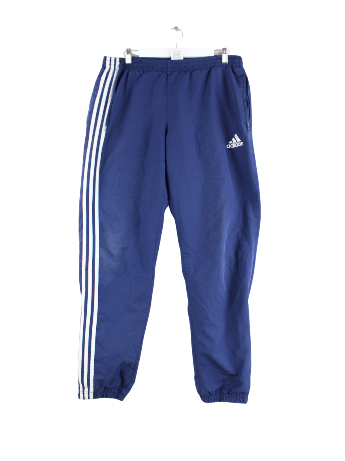 Blue track pants by Adidas from the early 2000s in size M. They are made of synthetic material. We would describe the condition as 'fine' (see pictures).
