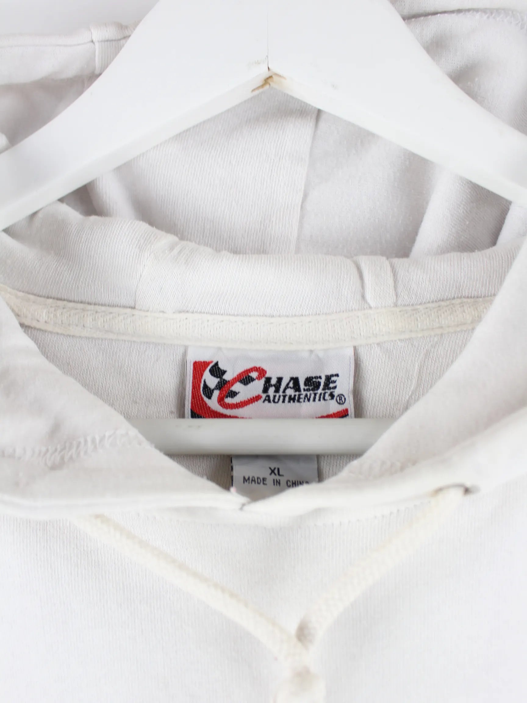Weißer Hoodie vom Label Chase in Größe XL. Er ist aus einer Baumwollmischung angefertigt. Den Zustand würden wir als 'In Ordnung' bezeichnen (vergl. Bilder).