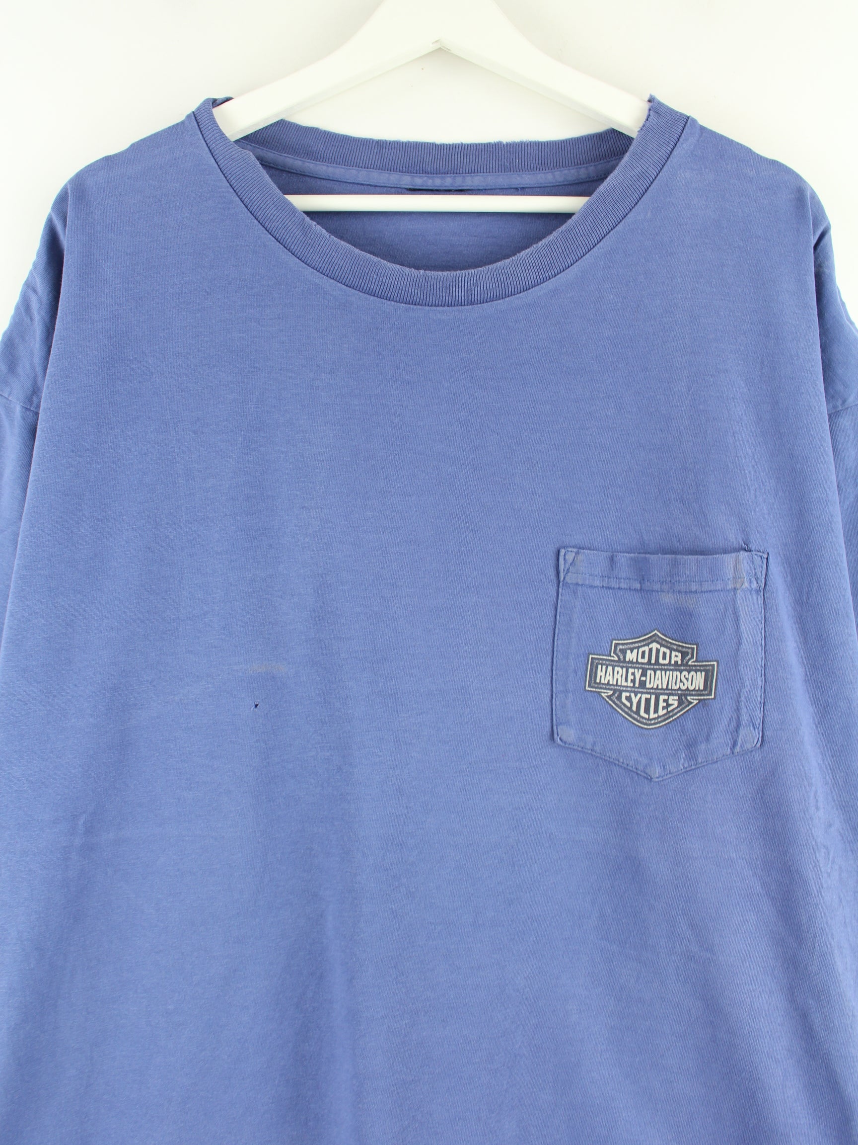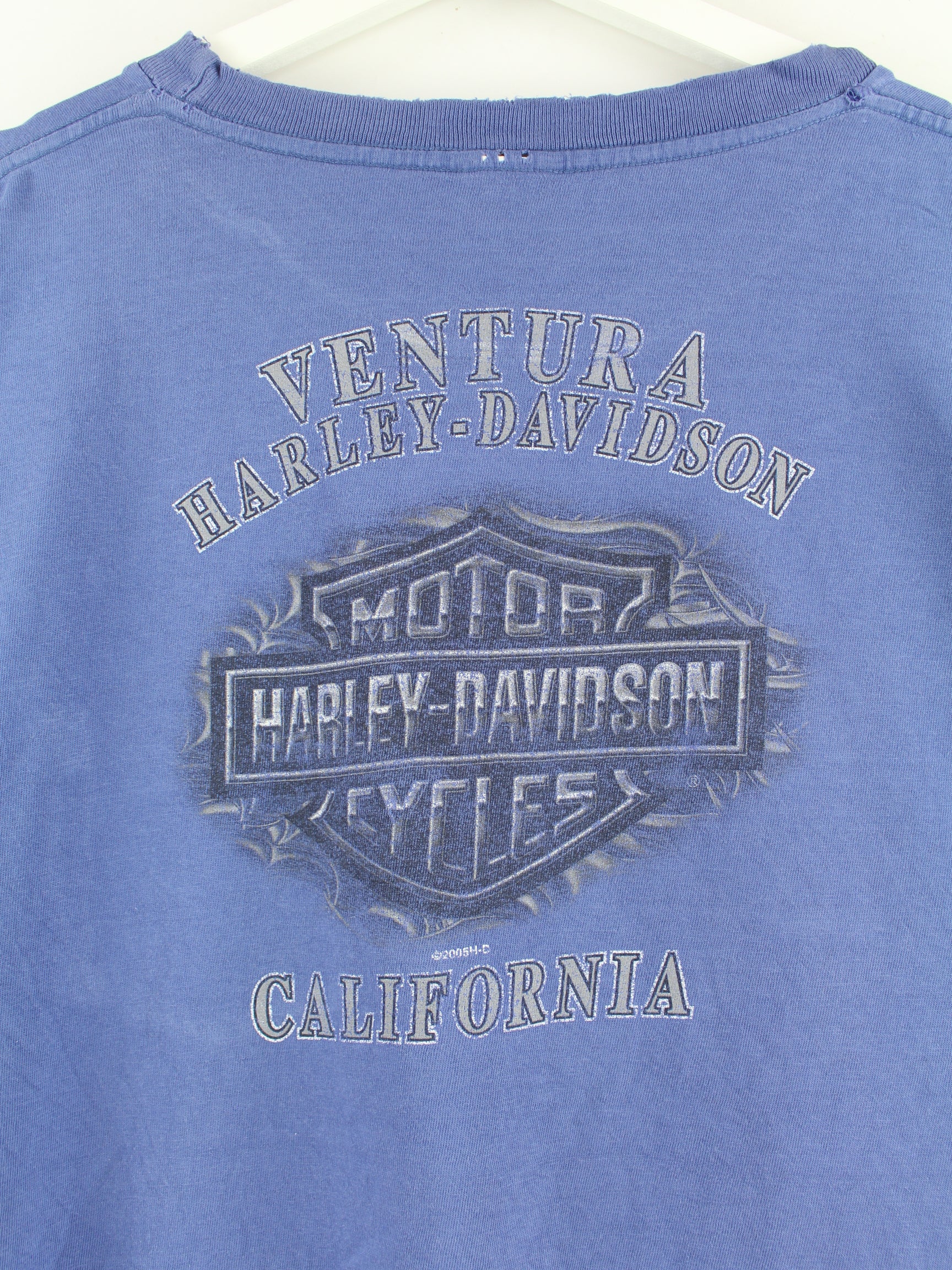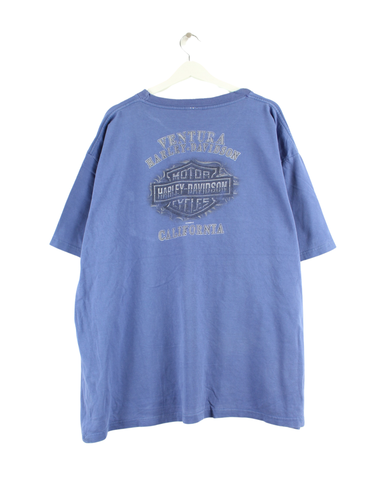 T-shirt from the Harley Davidson label in size XXL from the early 2000s. It is made of cotton and is available from us in blue. With a beautiful California print.