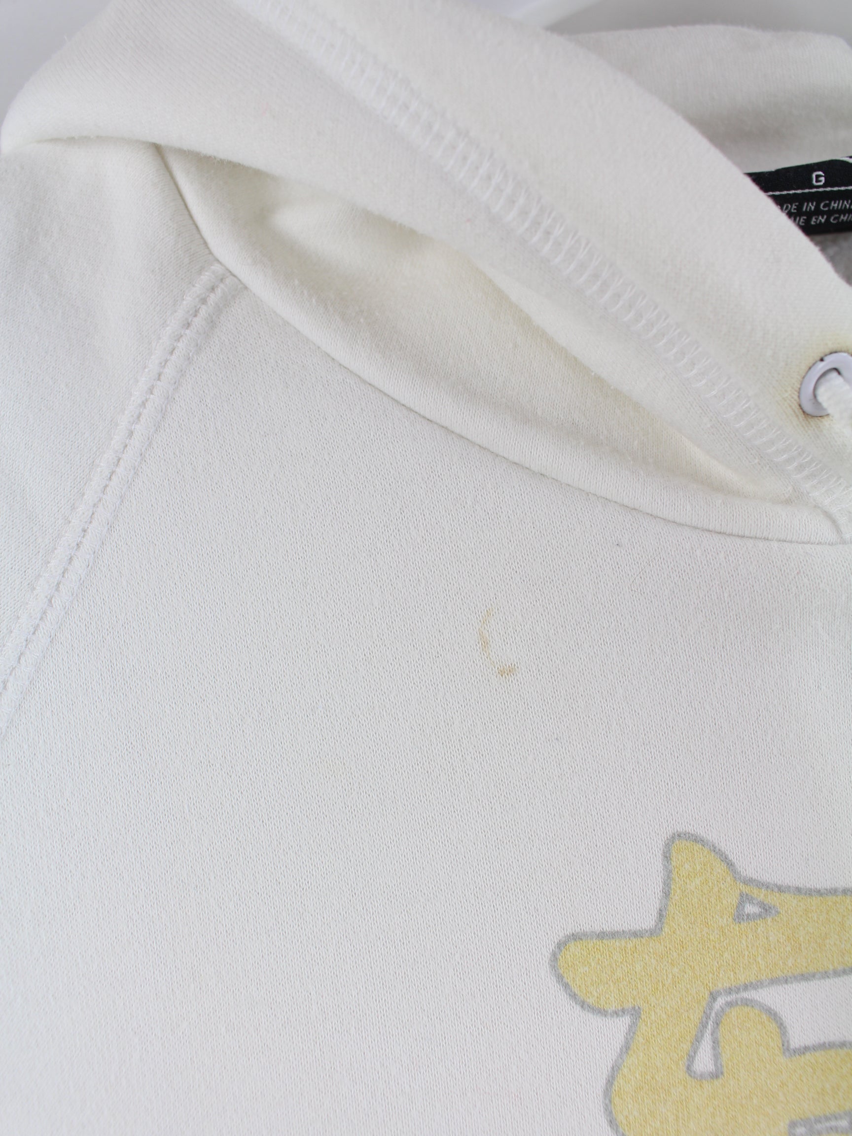 White hoodie from the Jordan label from the early 2000s in size M. It is made of a cotton blend and is in good condition. With a beautiful basketball print.