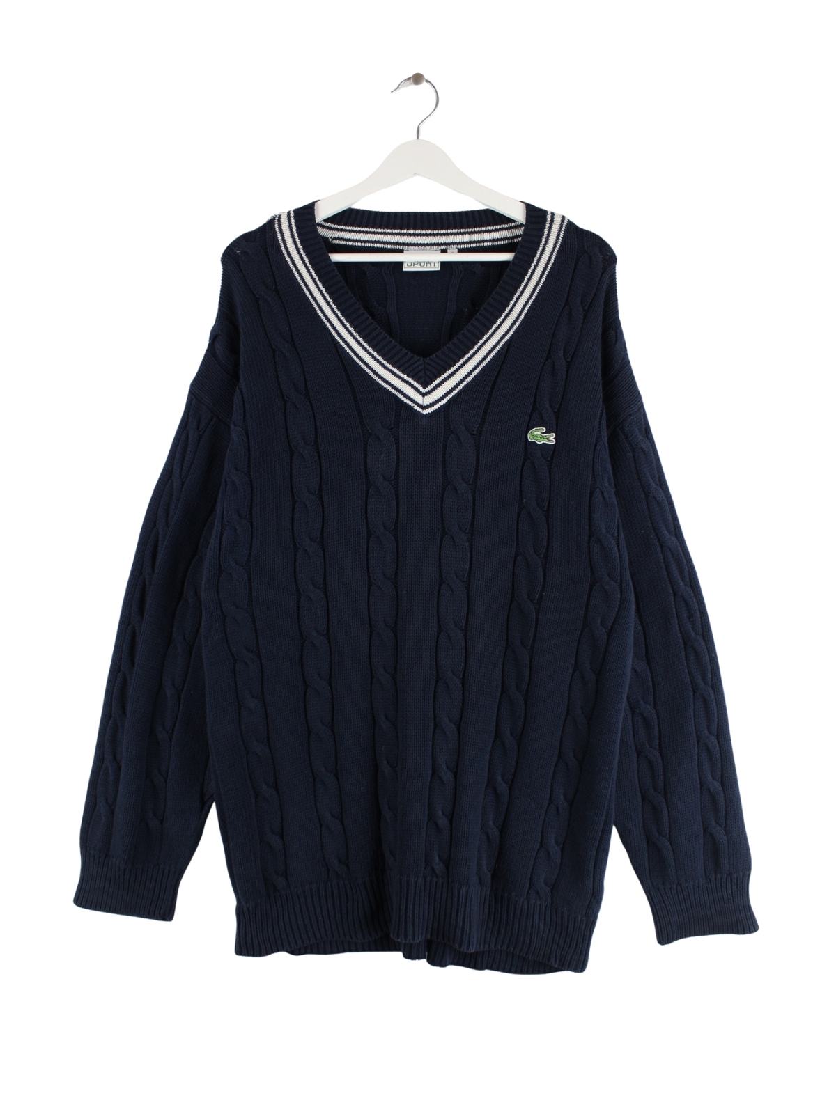 Blauer Pullover vom Label Lacoste in Größe XL. Er ist aus Baumwolle und in sehr gutem Zustand bei uns vorrätig.