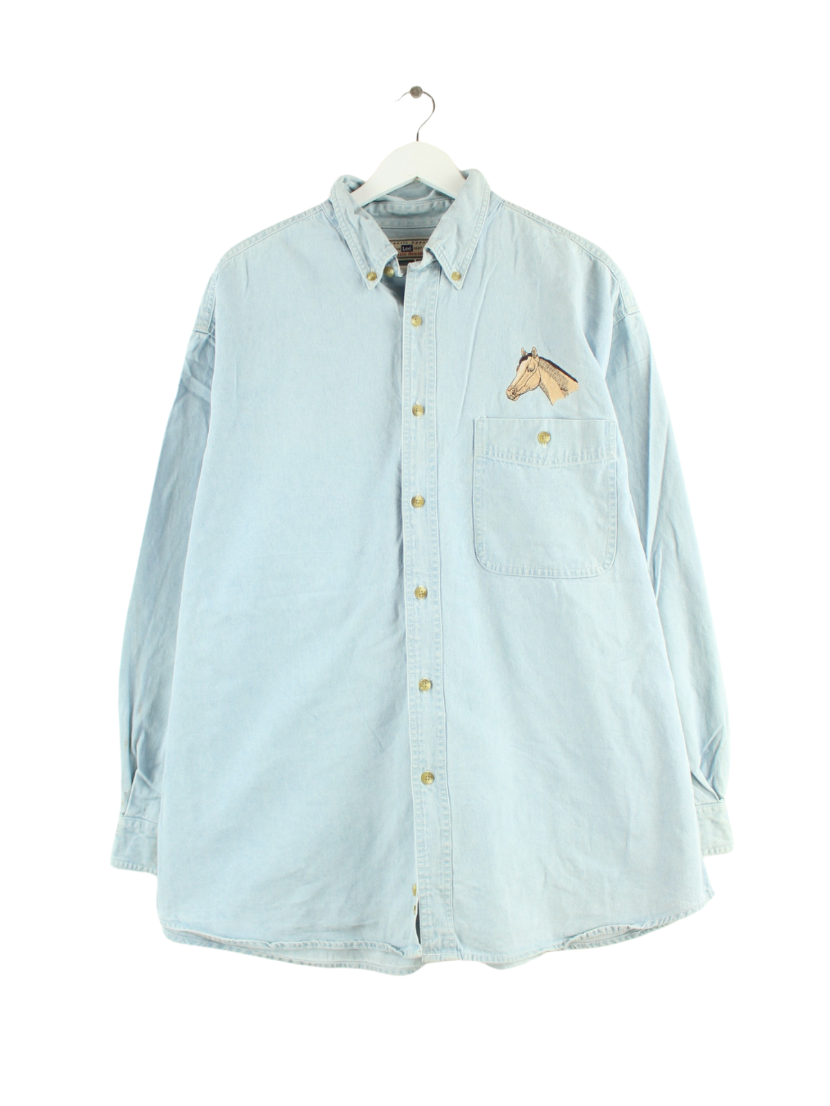 Leisure shirt from the Lee brand with embroidery in size XXL from the early 2000s. It is made of cotton and is available from us in blue.