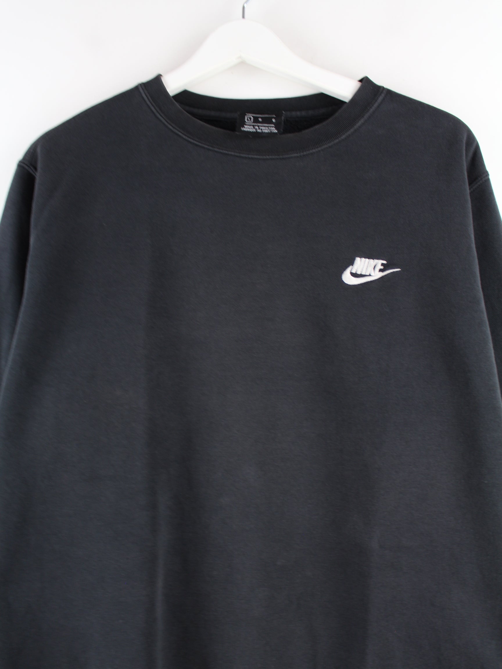 Sweater from the label Nike with embroidered logo in size L. It is made of a cotton blend and comes in black.