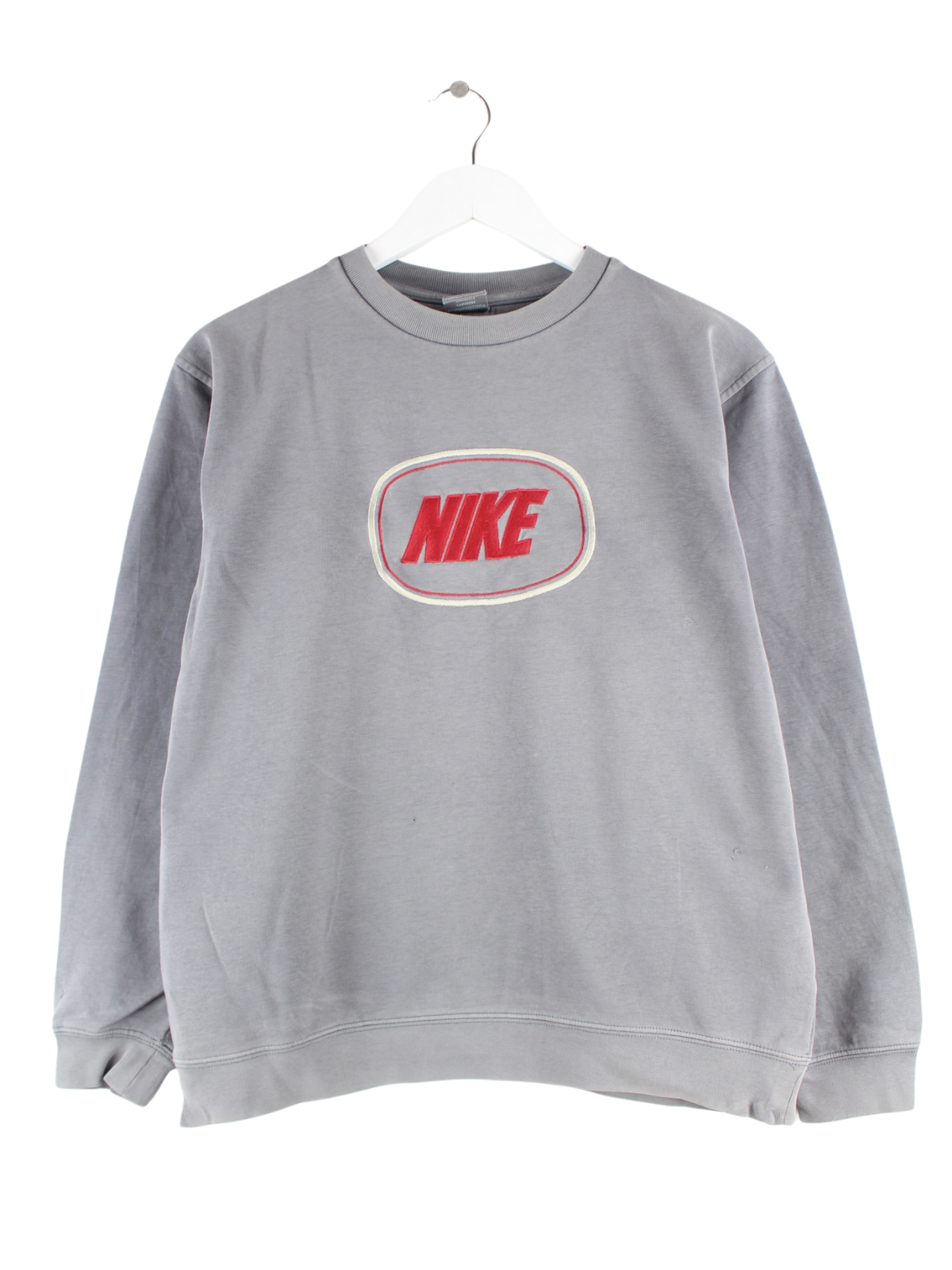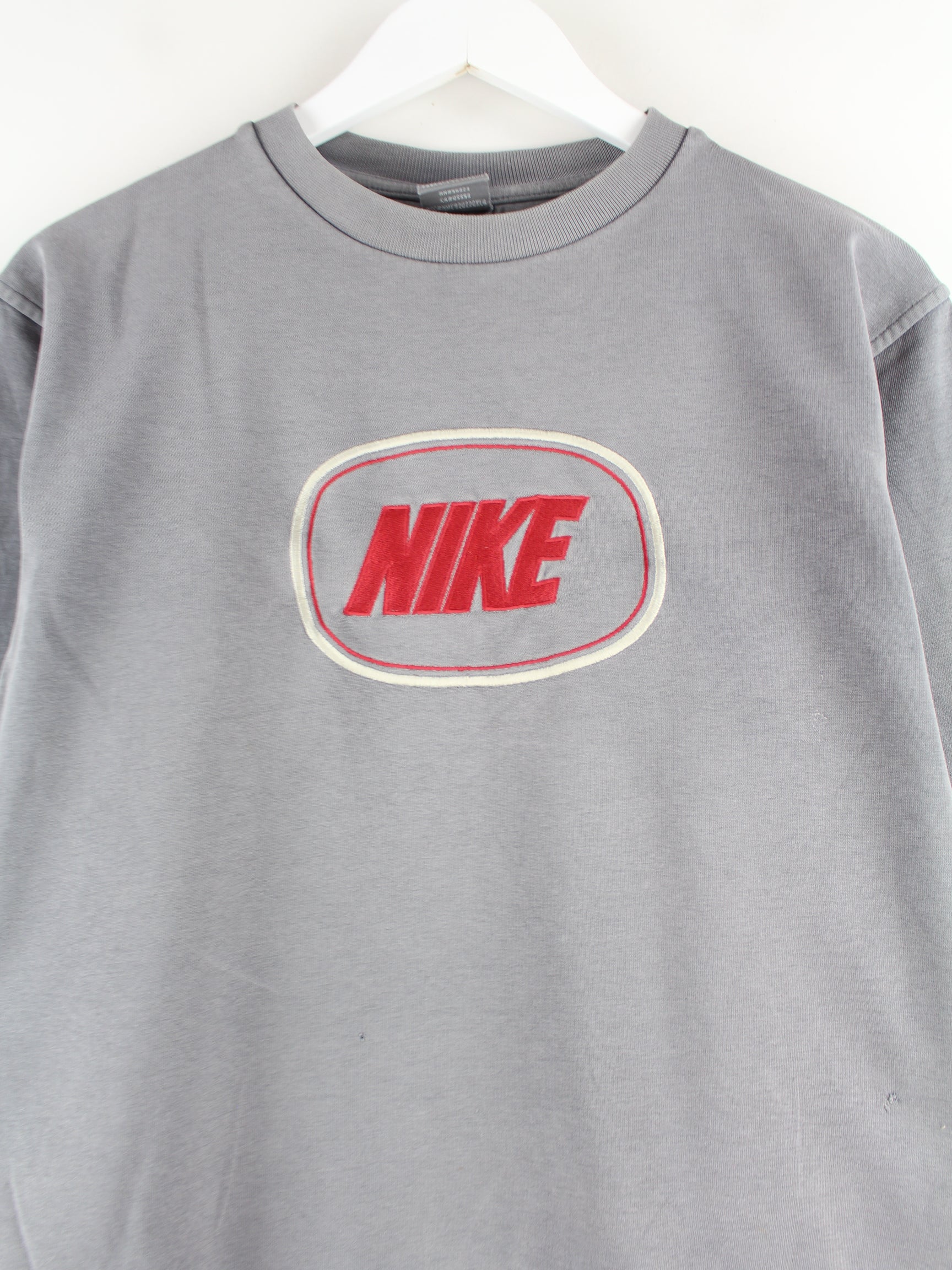 Sweater from the Nike label with embroidered logo in size S from the early 2000s. It is made from a cotton blend and is available in grey.