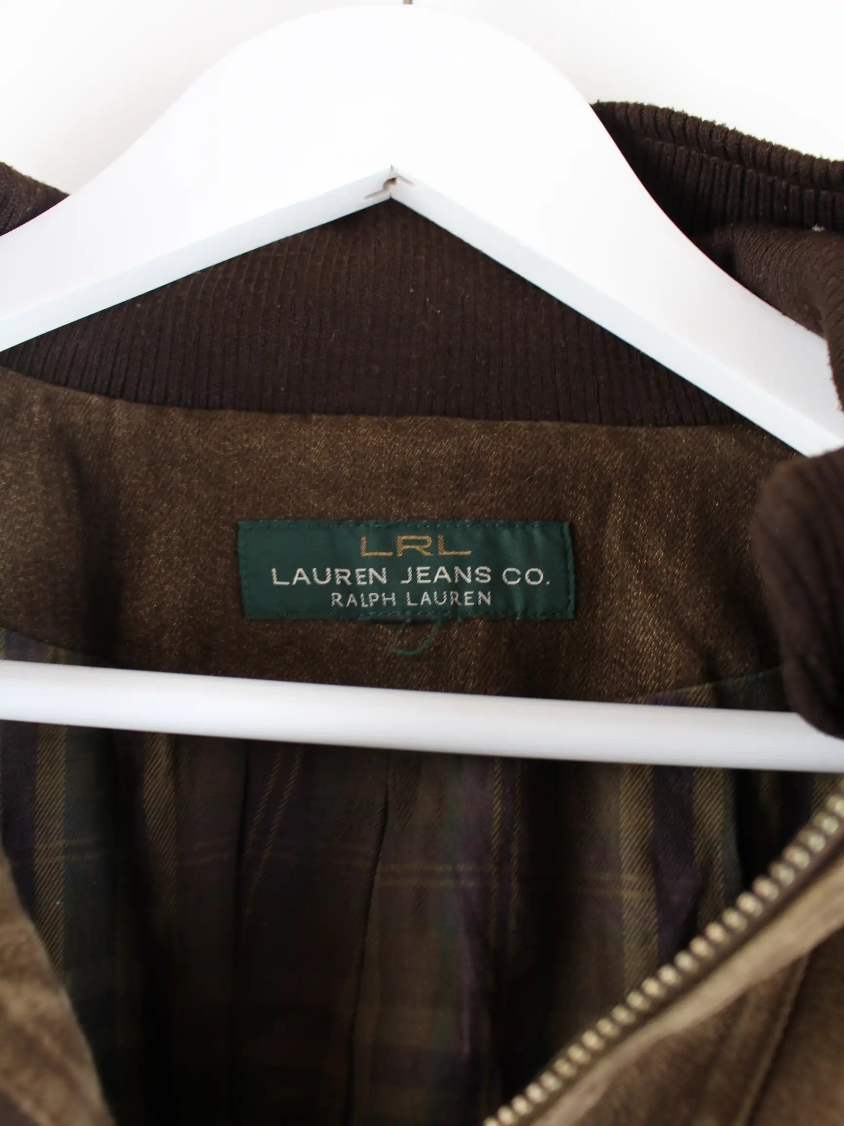 Braune Denim Jacke der Marke Ralph Lauren in Größe S. Sie ist aus Baumwolle gefertigt und in sehr gutem Zustand im Bestand.