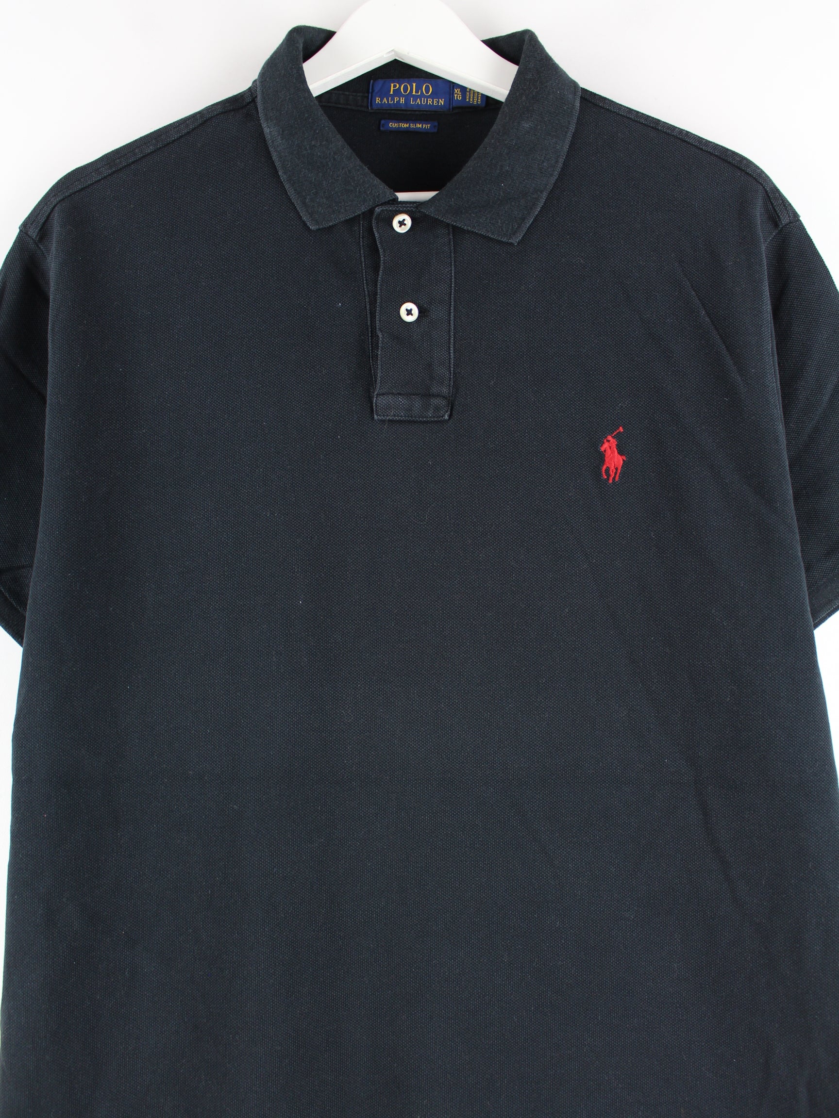 Black polo shirt from the label Ralph Lauren in size XL. It is made of cotton and is in very good condition.