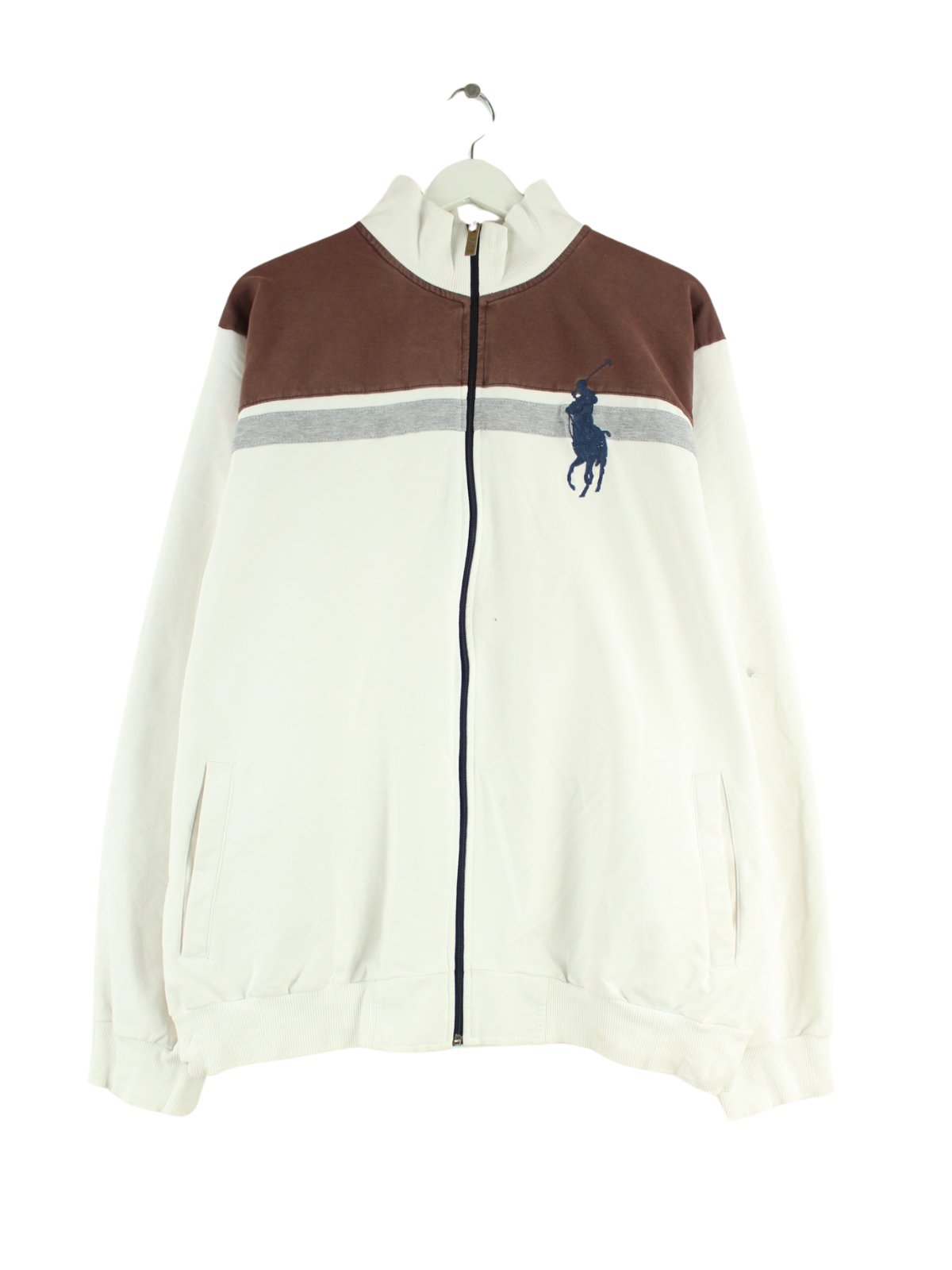 Sweat jacket from Ralph Lauren with embroidered logo in size XL from the early 2000s. It is made from a cotton blend and comes in white.