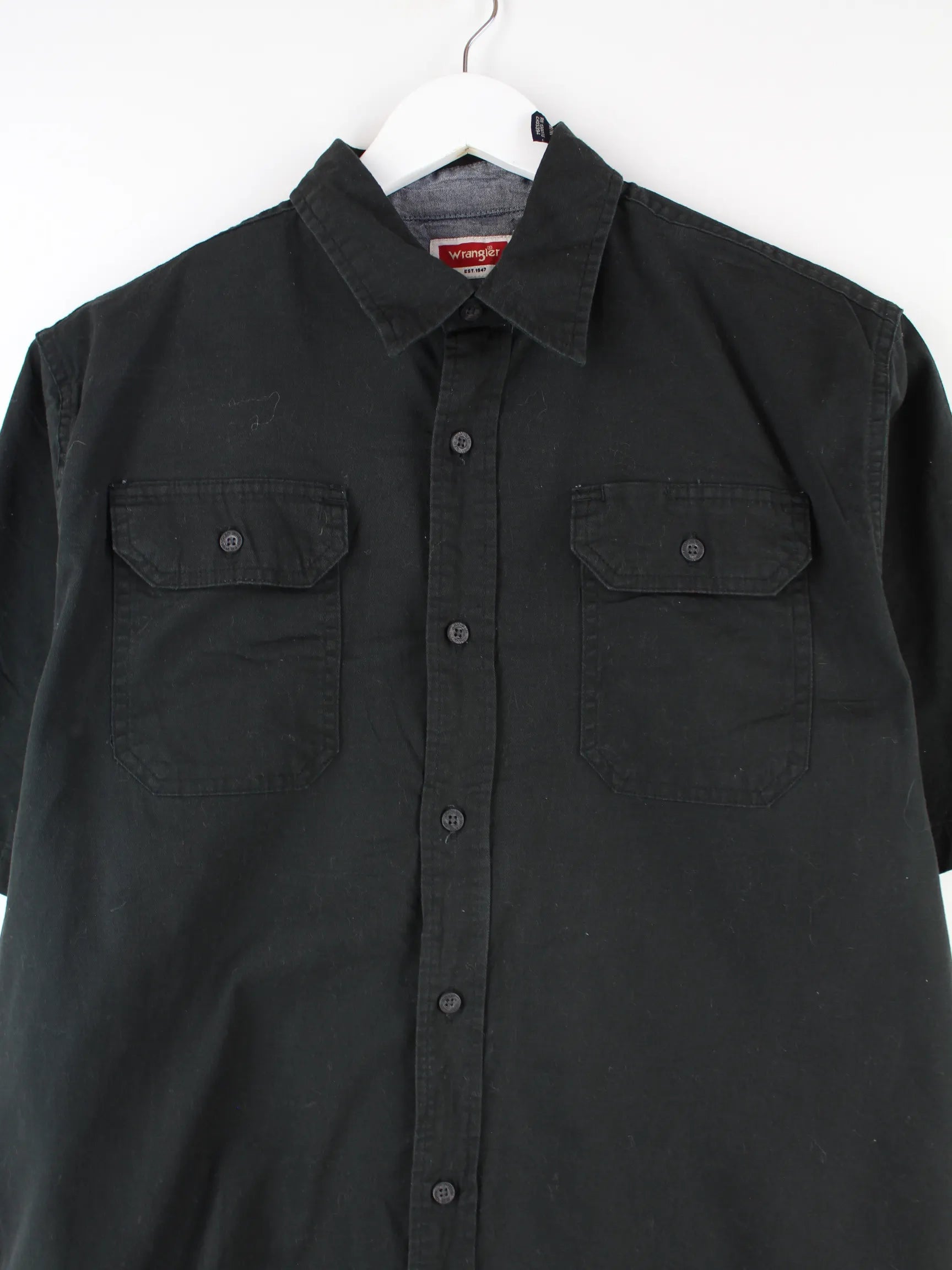 Schwarzes Freizeit Hemd aus dem Hause Wrangler in Größe M. Es ist aus Baumwolle gemacht und in sehr gutem Zustand im Bestand.