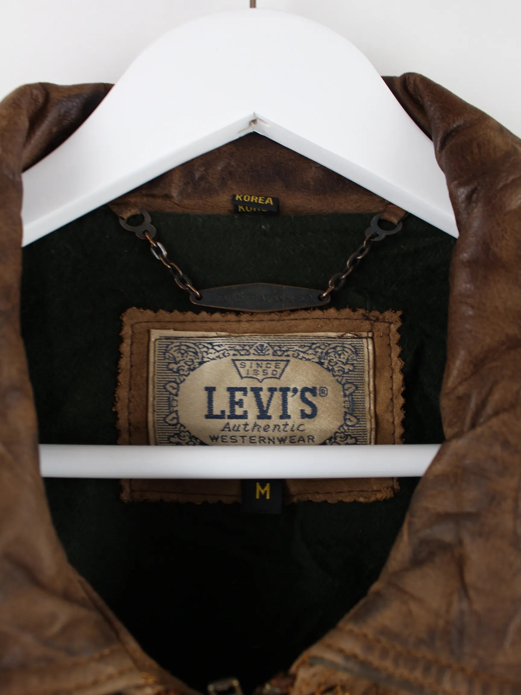 Vintage 90s Bomber Leder Jacke Schwarz M