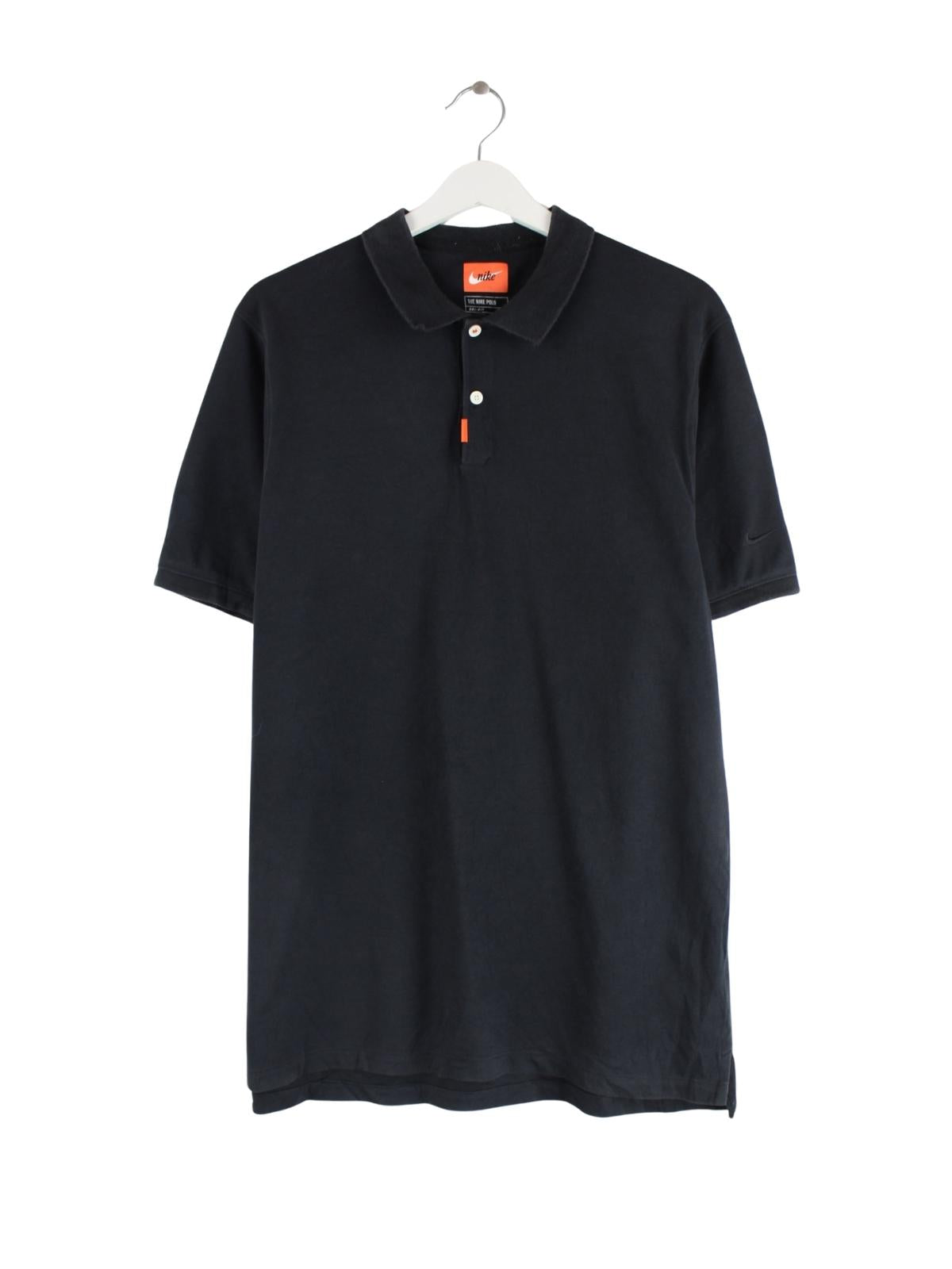 Schwarzes Poloshirt der Marke Nike in Größe M. Es ist aus Baumwolle gefertigt und in sehr gutem Zustand zu haben.
