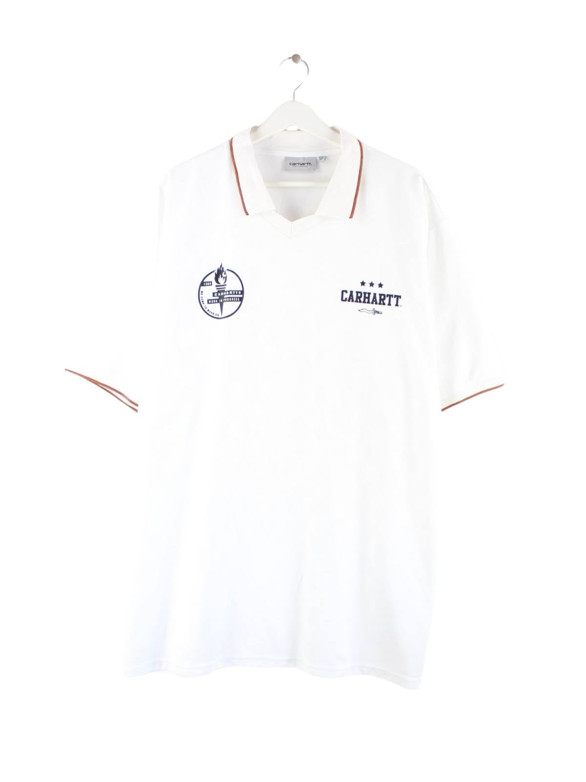 Poloshirt der Brand Carhartt in Größe XXL. Es ist aus Synthetik angefertigt und in Weiß bei uns vorrätig. Mit schönem undefined Print.