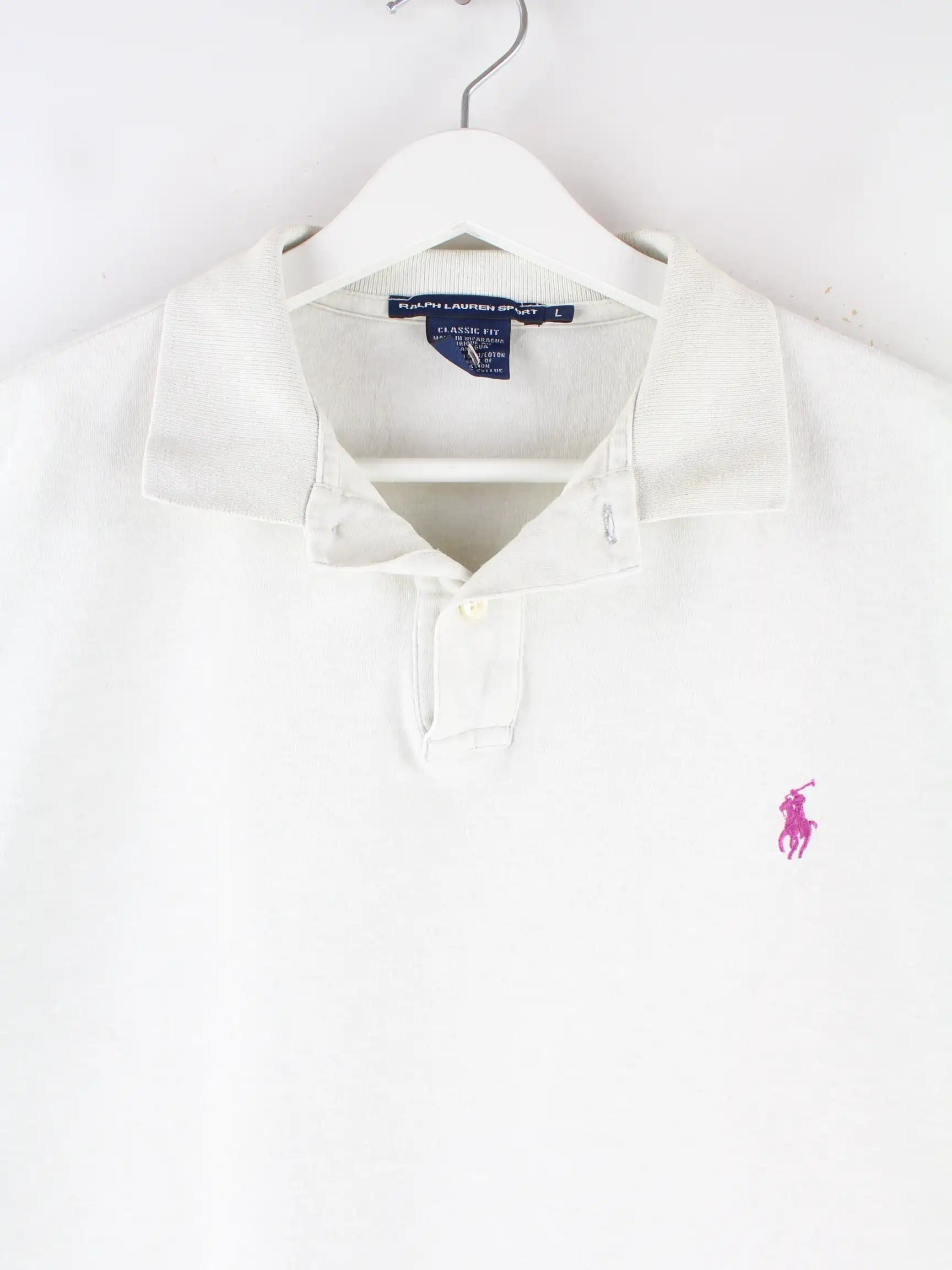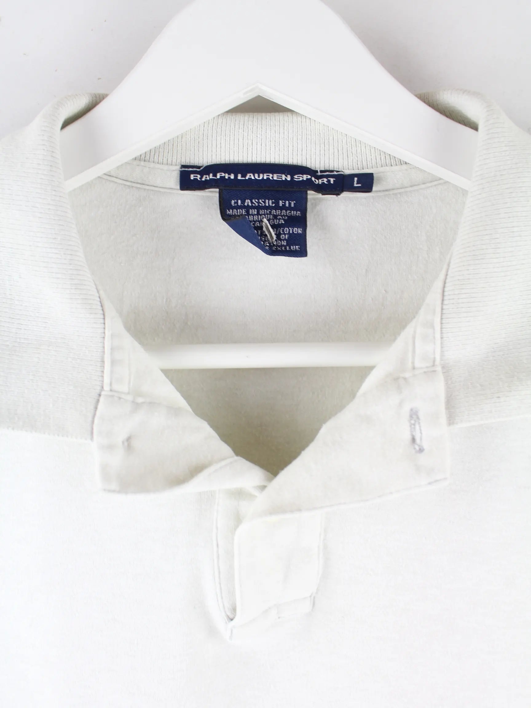 Graues Poloshirt aus dem Hause Ralph Lauren in Größe L. Es ist aus Baumwolle und in gutem Zustand im Bestand.