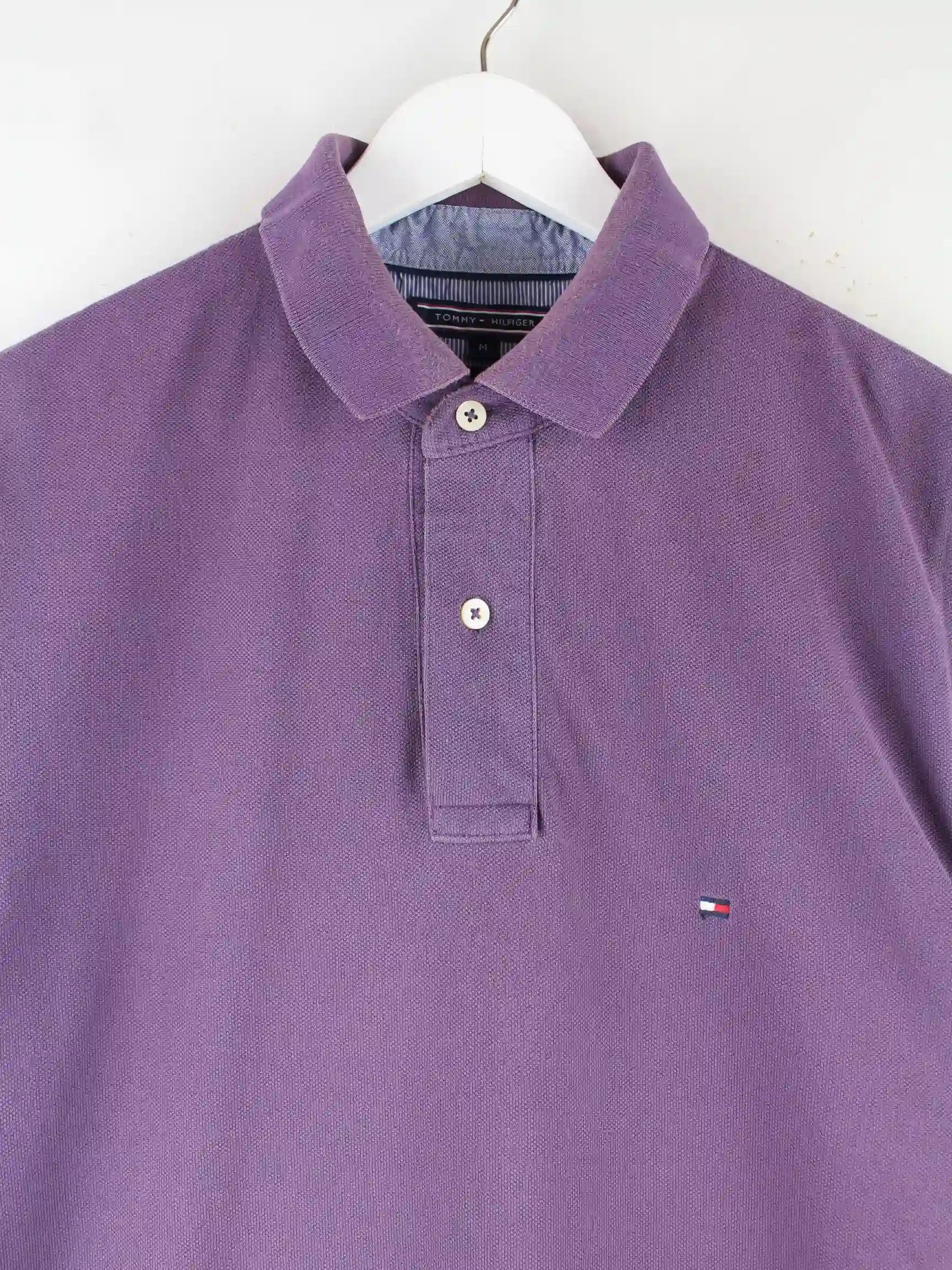 Poloshirt des Labels Tommy Hilfiger in Größe M. Es ist aus Baumwolle und in Lila vorrätig.