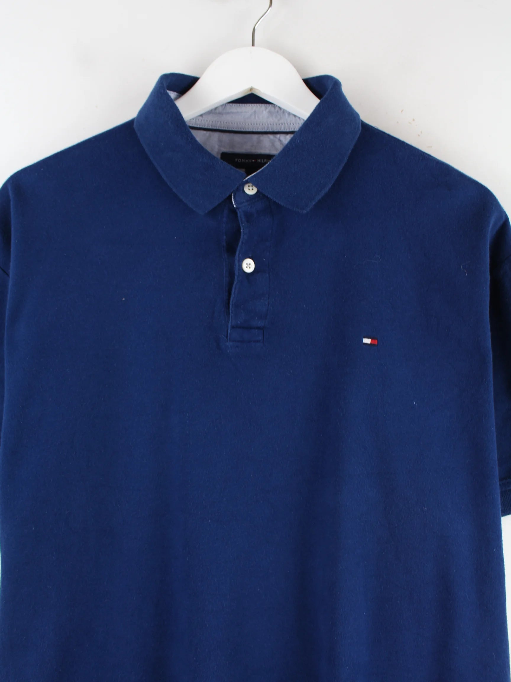 Poloshirt vom Label Tommy Hilfiger in Größe L. Es ist aus Baumwolle und in Blau bei uns vorrätig.