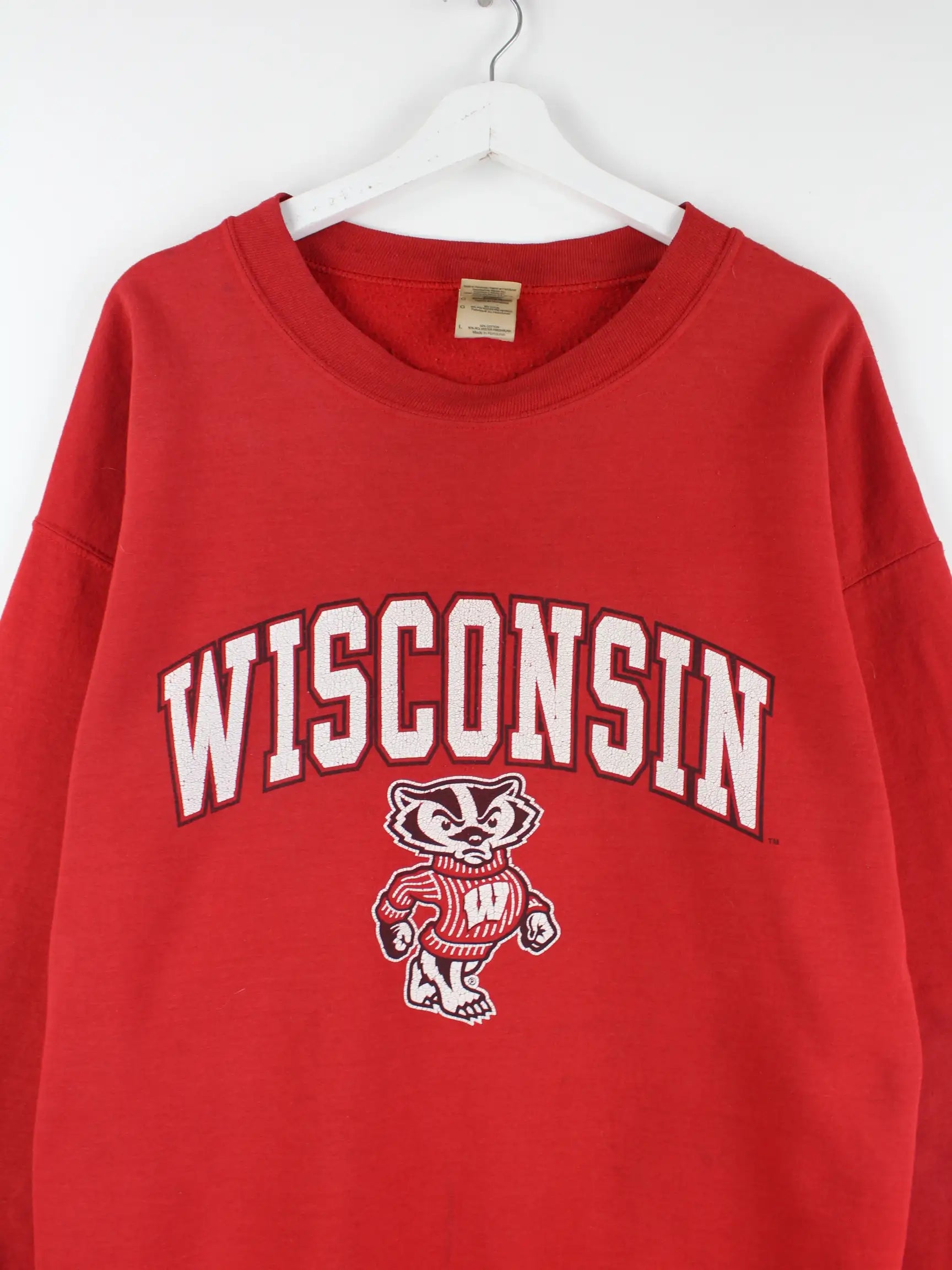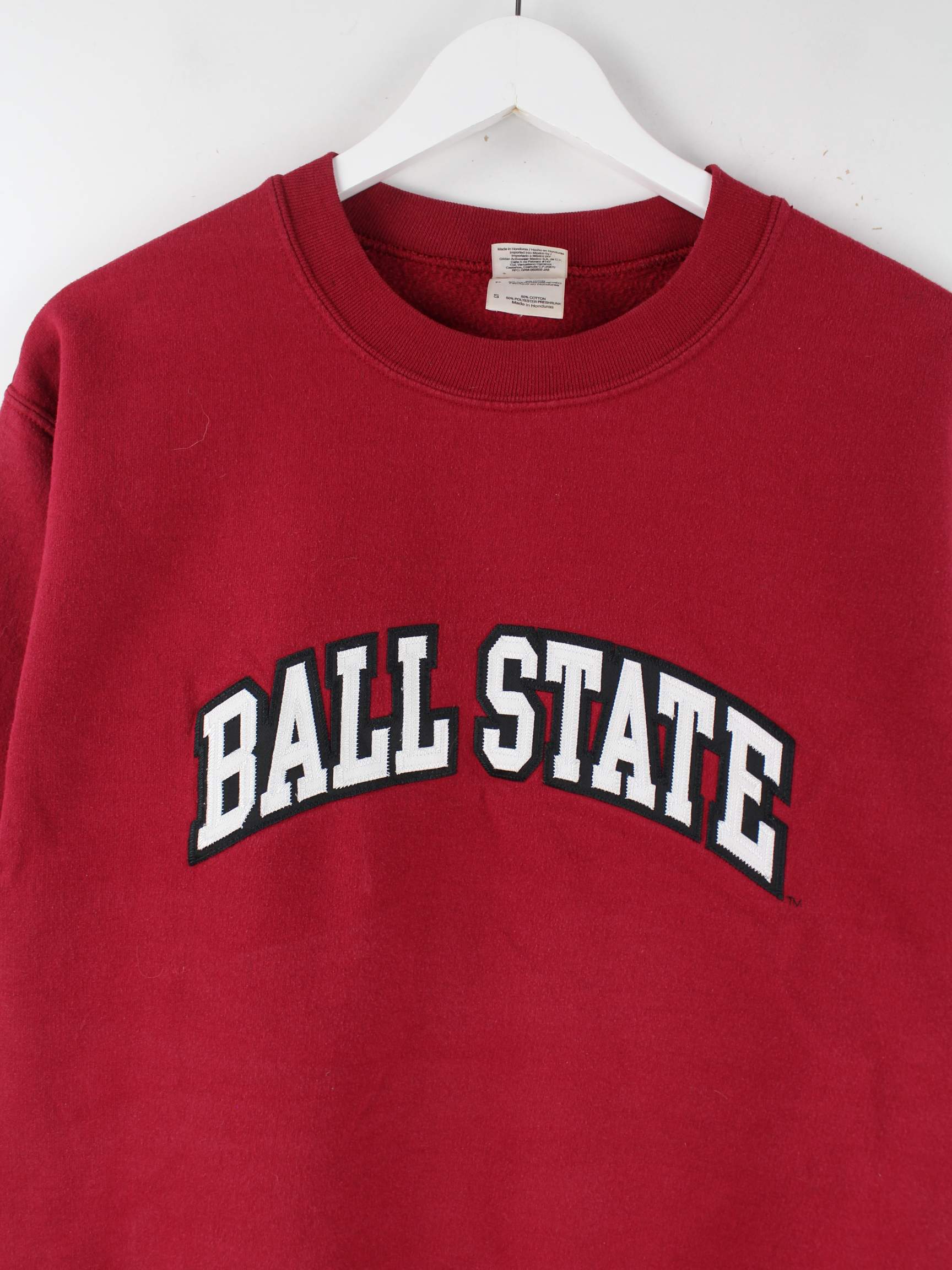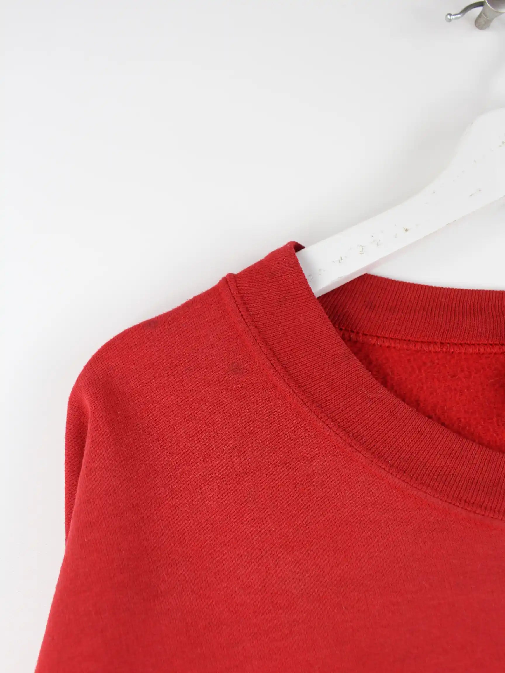 Roter Sweater mit Stick von Gildan in Größe S. Er ist aus einer Baumwollmischung und in sehr gutem Zustand auf Lager.