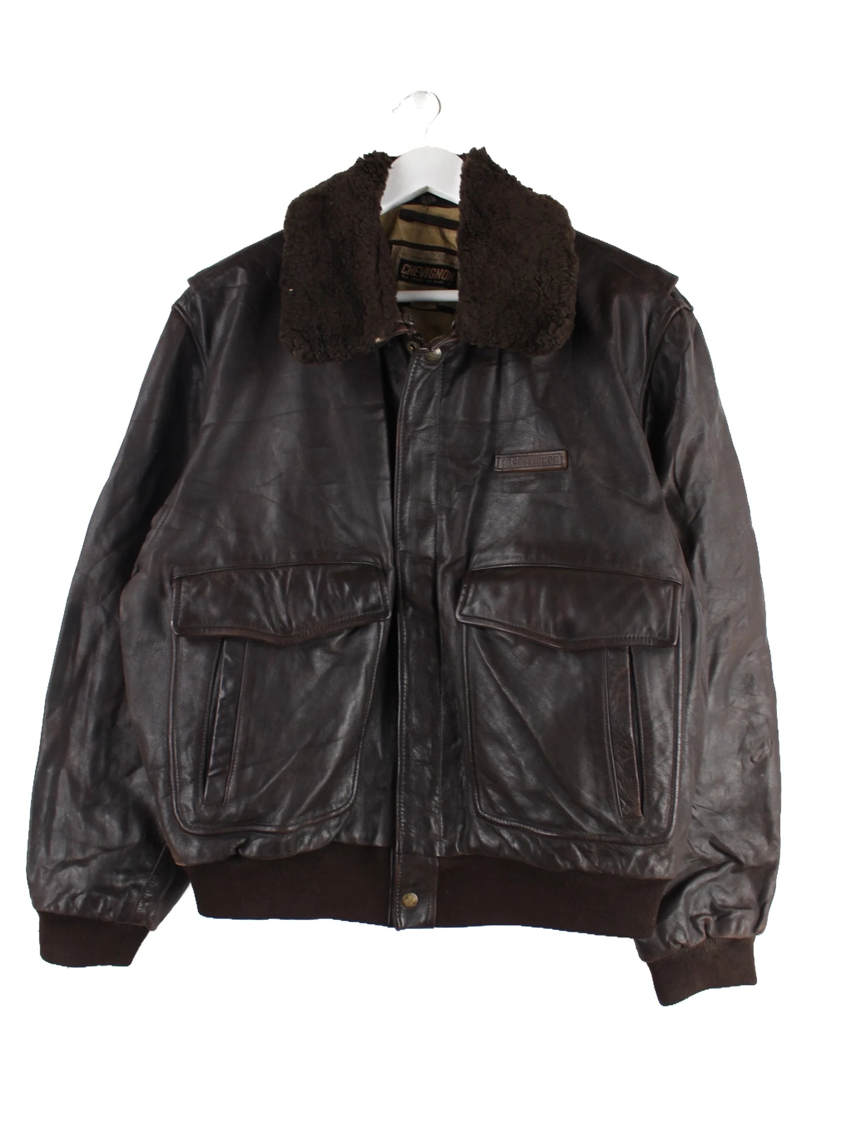 Chevignon 90s Vintage Spellout Leder Jacke Braun M