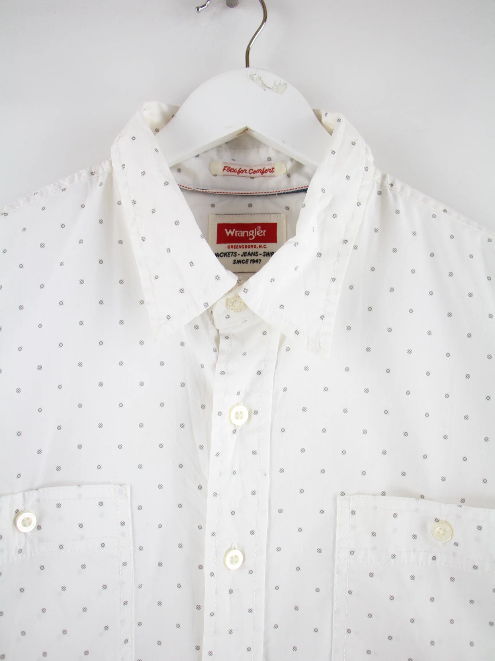 Hemd vom Brand Wrangler in Größe L. Es ist aus Baumwolle hergestellt und in Weiß vorrätig.
