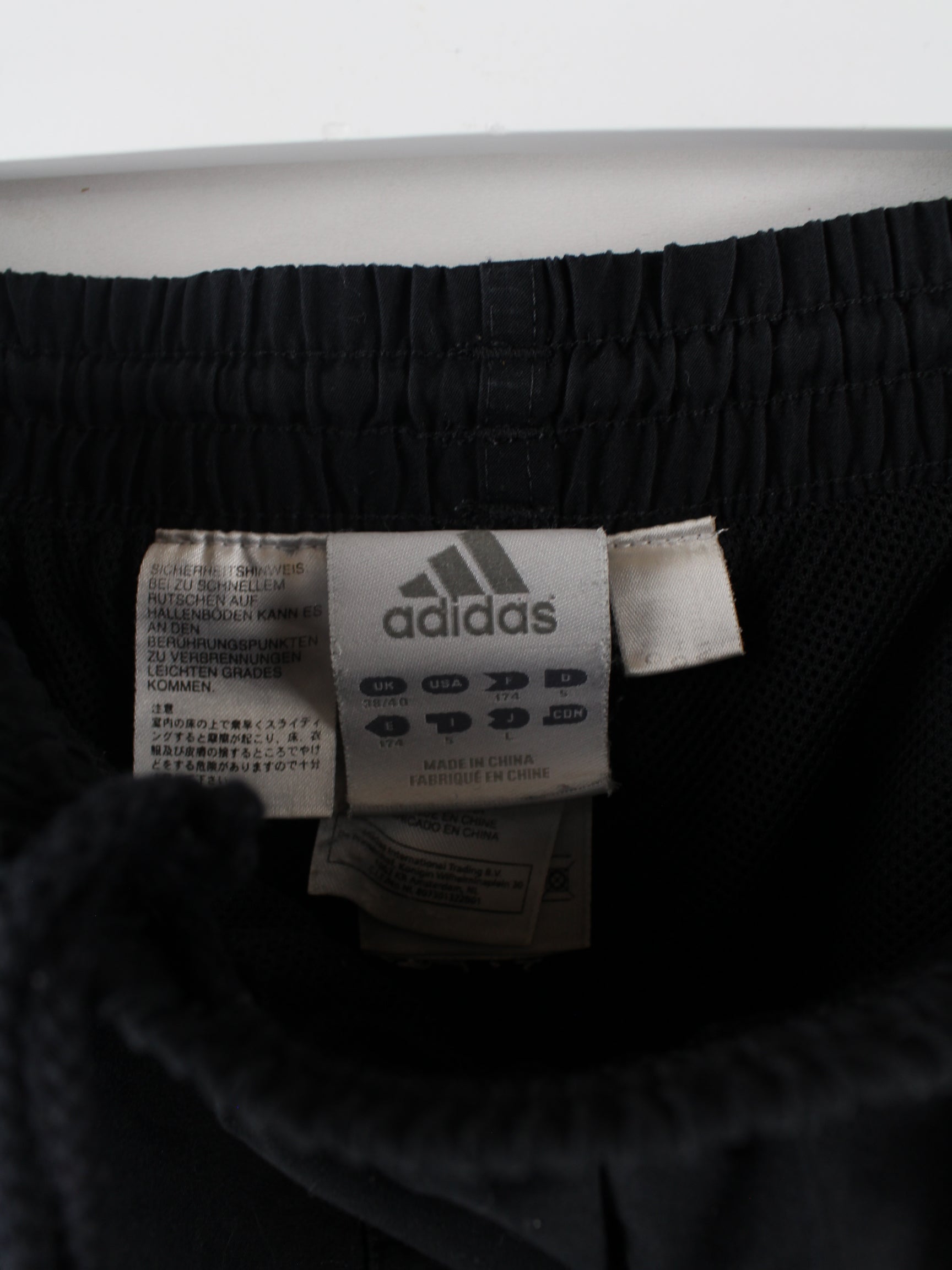 Schwarze Track Pants von Adidas in Größe L. Sie sind aus Synthetik und in gutem Zustand zu haben.