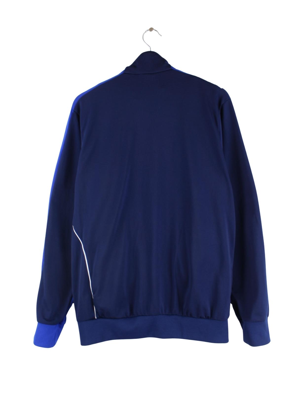 Trainingsjacke vom Brand Adidas in Größe M. Sie ist aus Synthetik angefertigt und in Blau im Bestand.