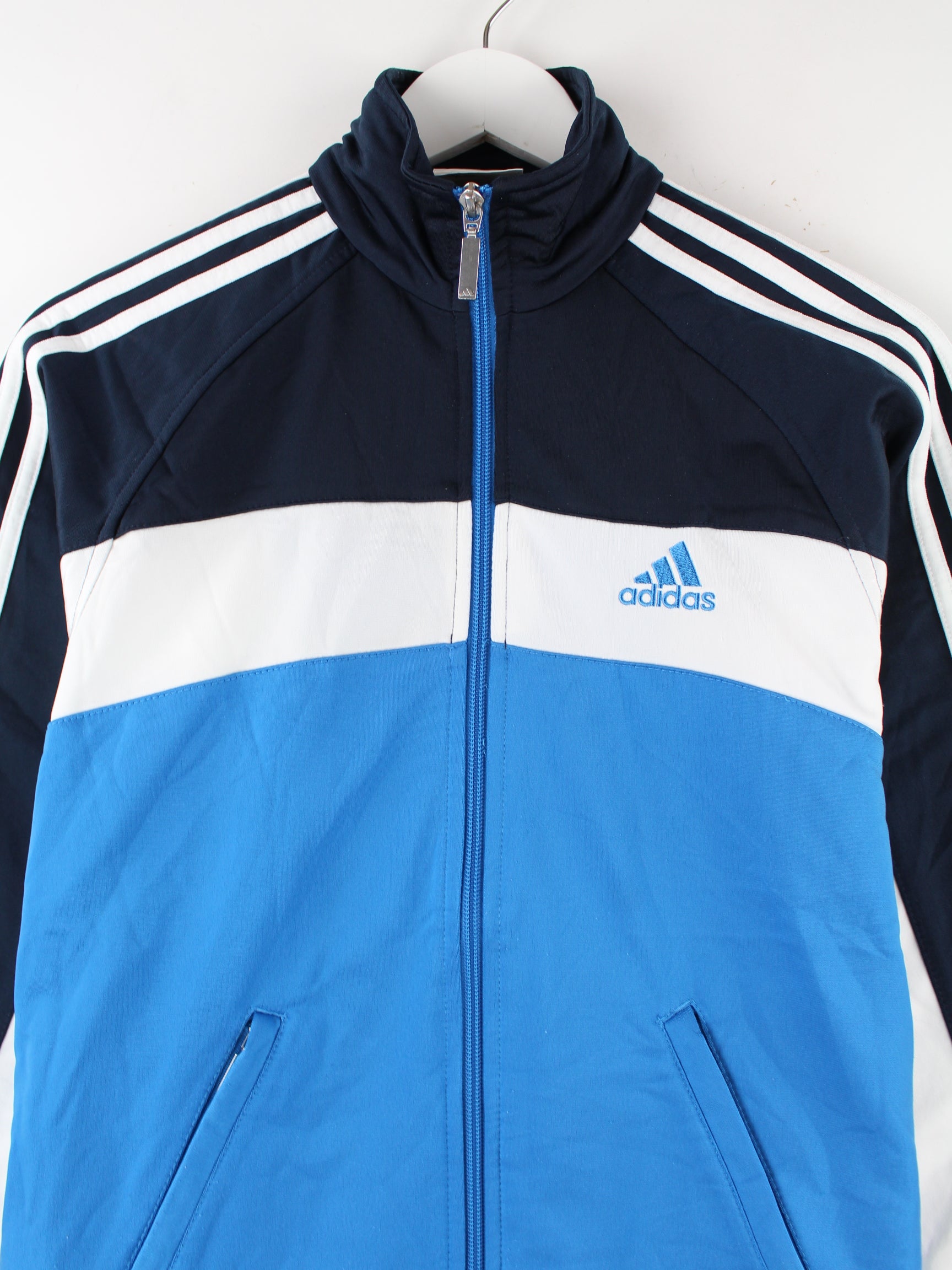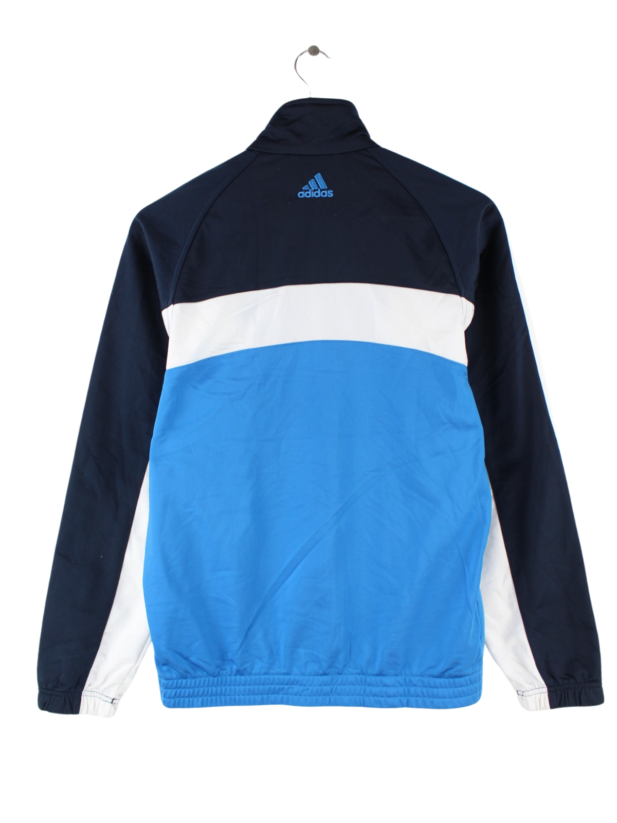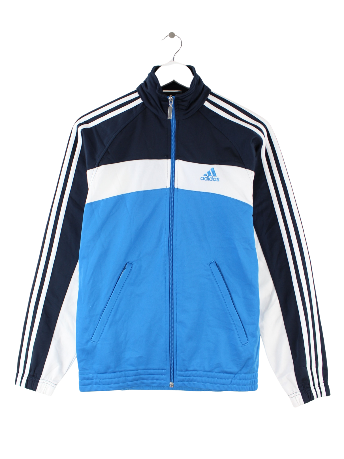 Trainingsjacke des Labels Adidas in Größe S. Sie ist aus Synthetik gemacht und in Blau lieferbar.