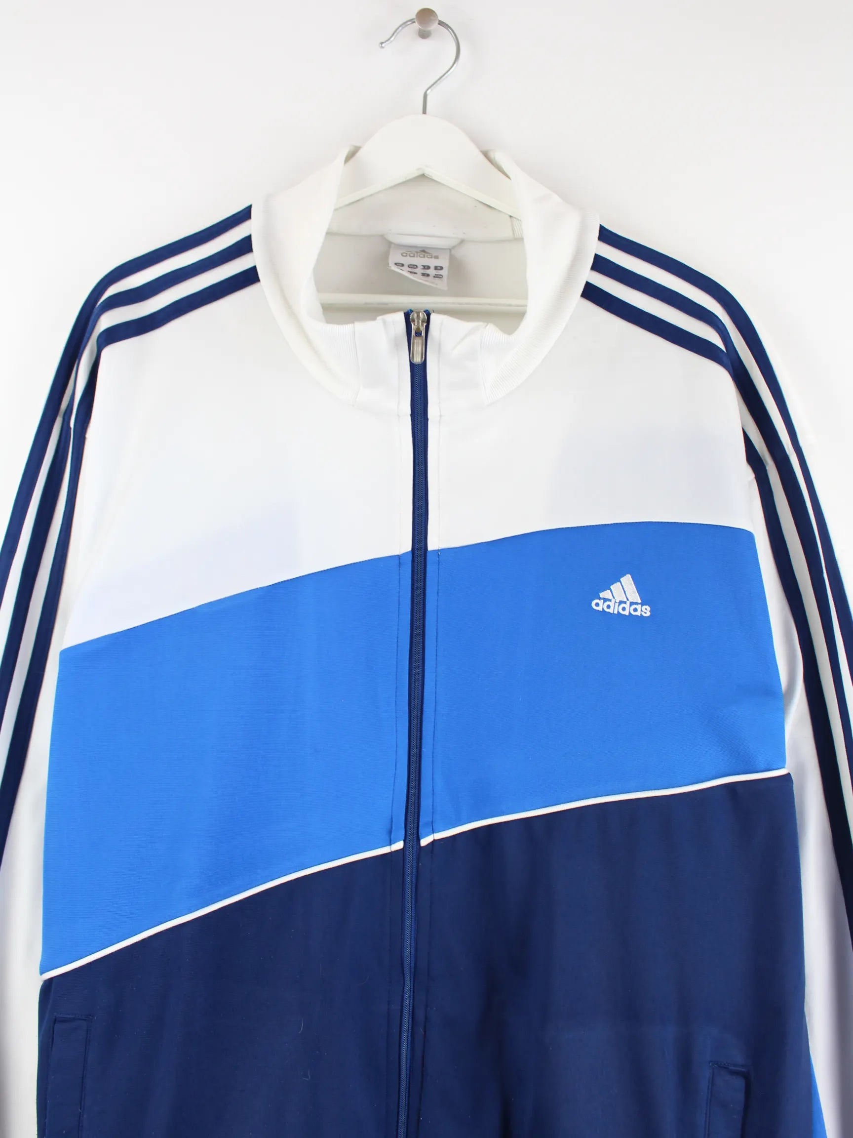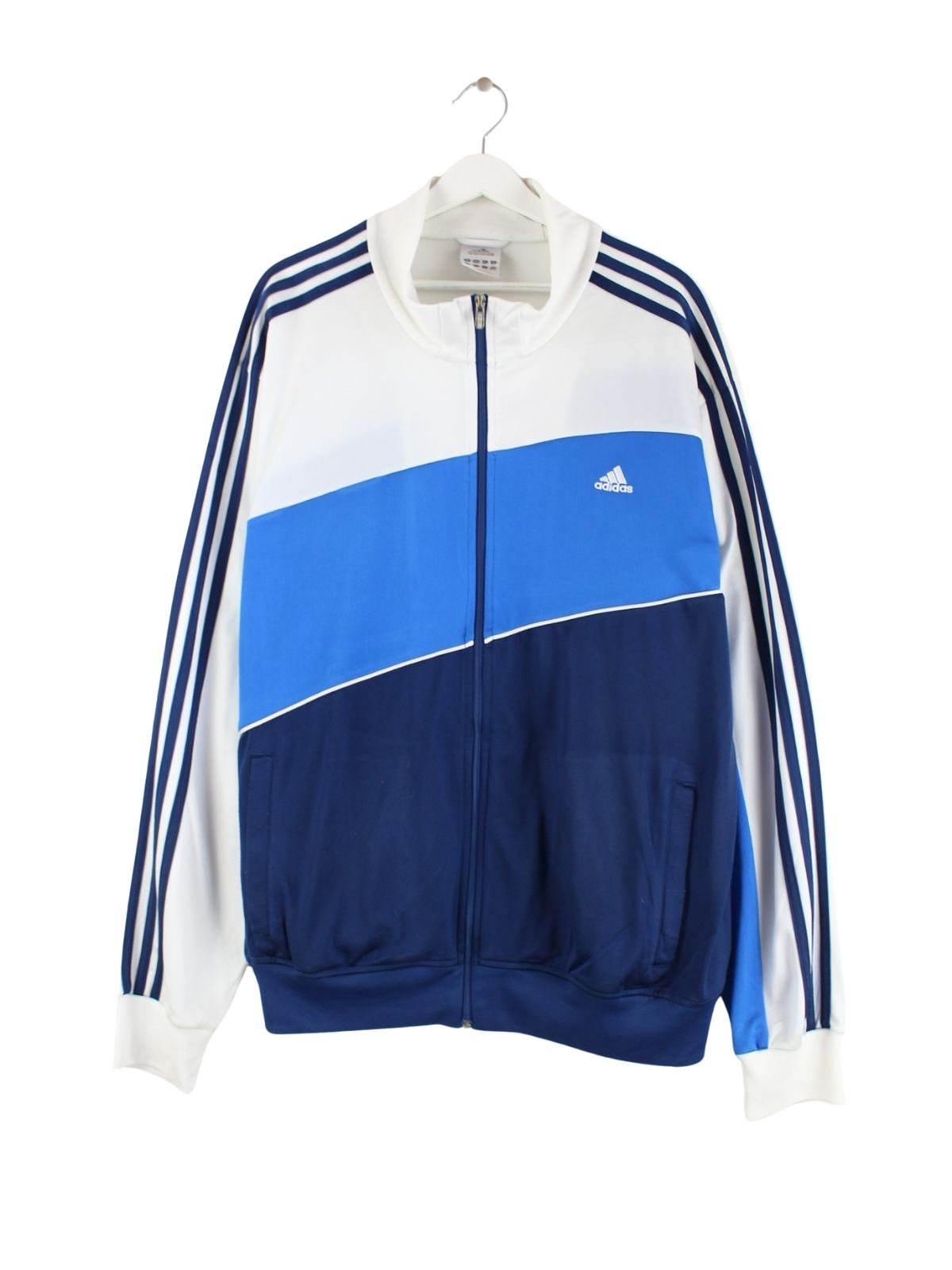 Trainingsjacke der Brand Adidas in Größe XL. Sie ist aus Synthetik hergestellt und in Blau lieferbar.