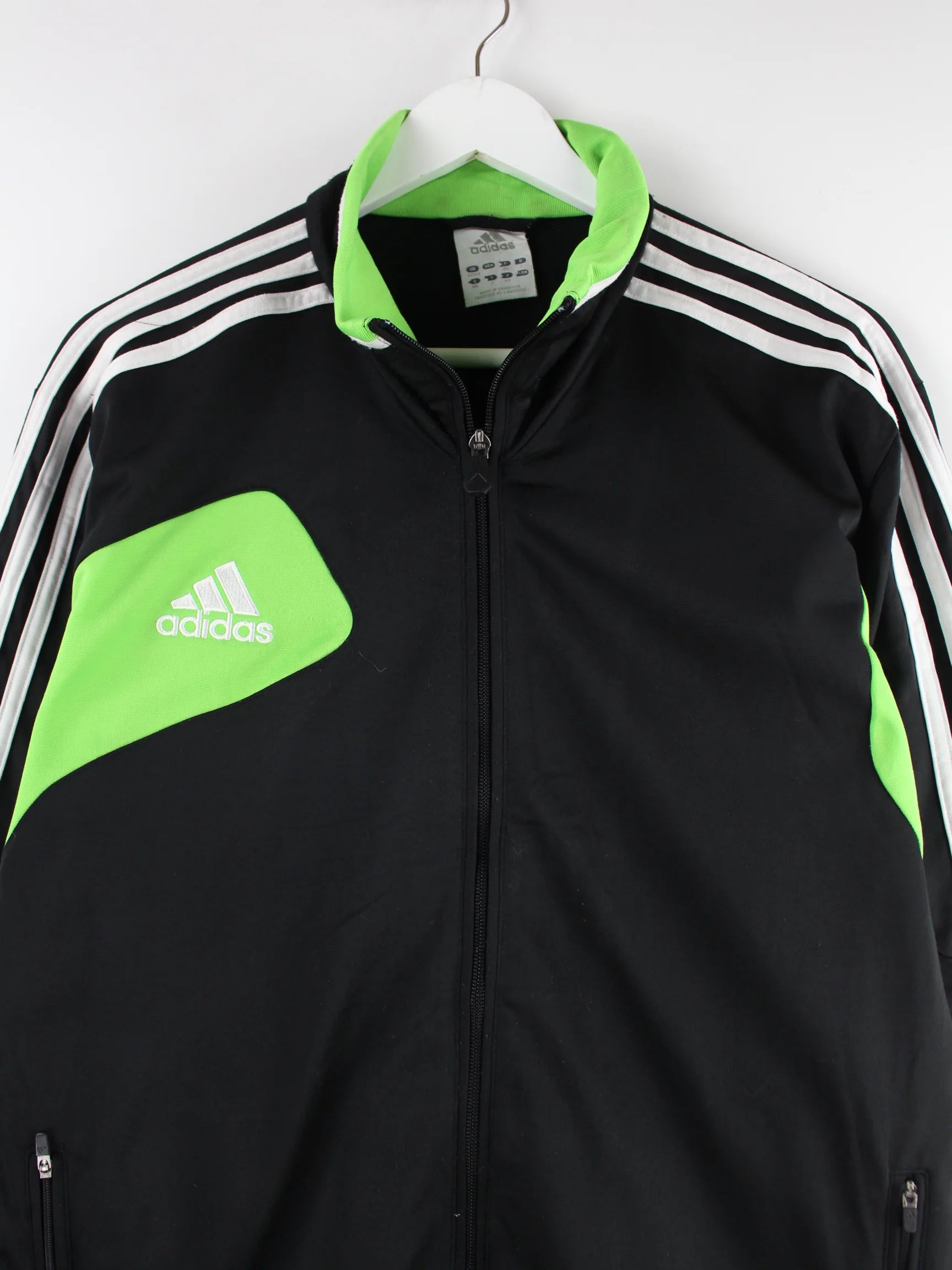 Trainingsjacke des Labels Adidas in Größe XL. Sie ist aus Synthetik produziert und in Schwarz in Stock.