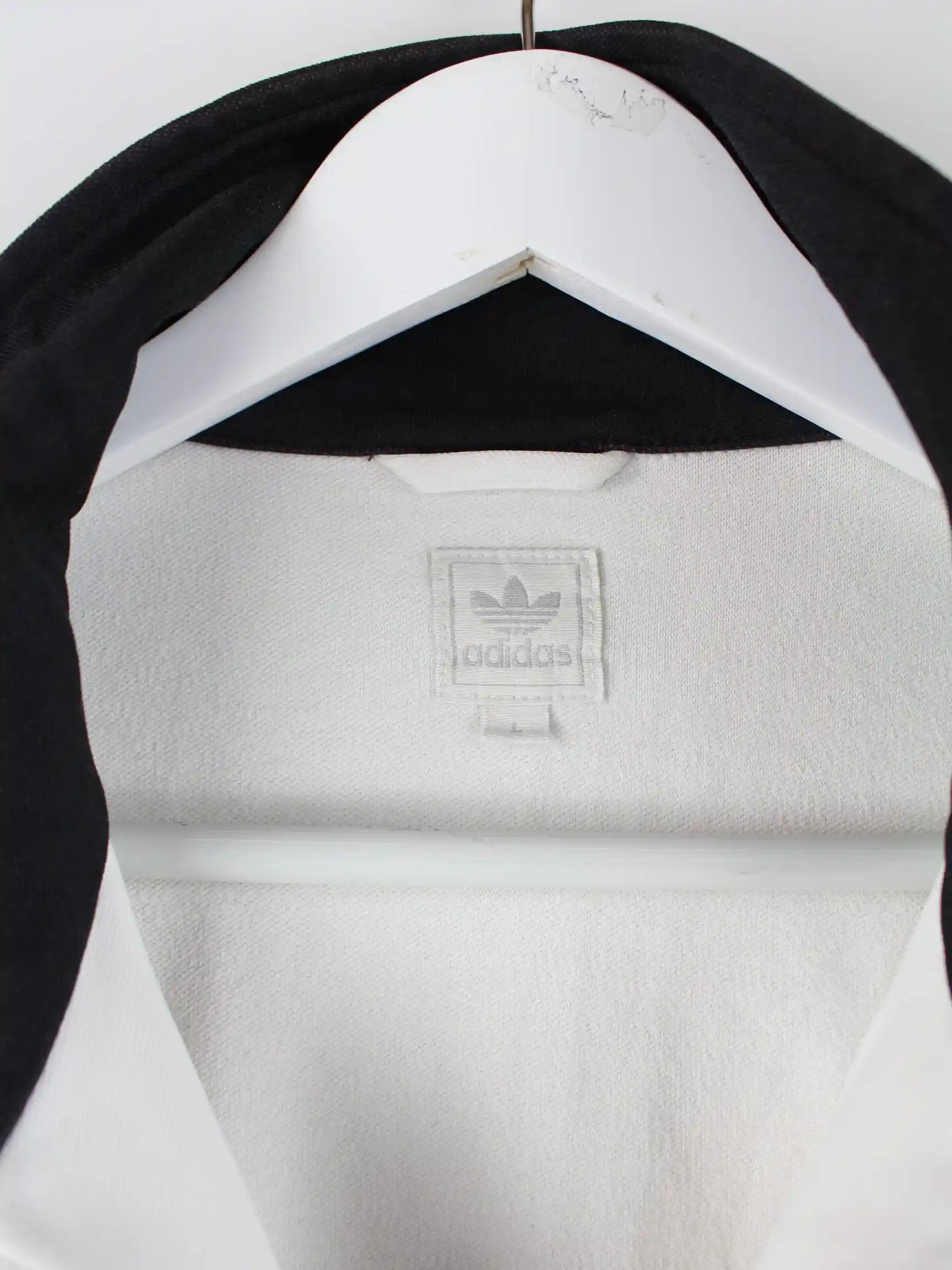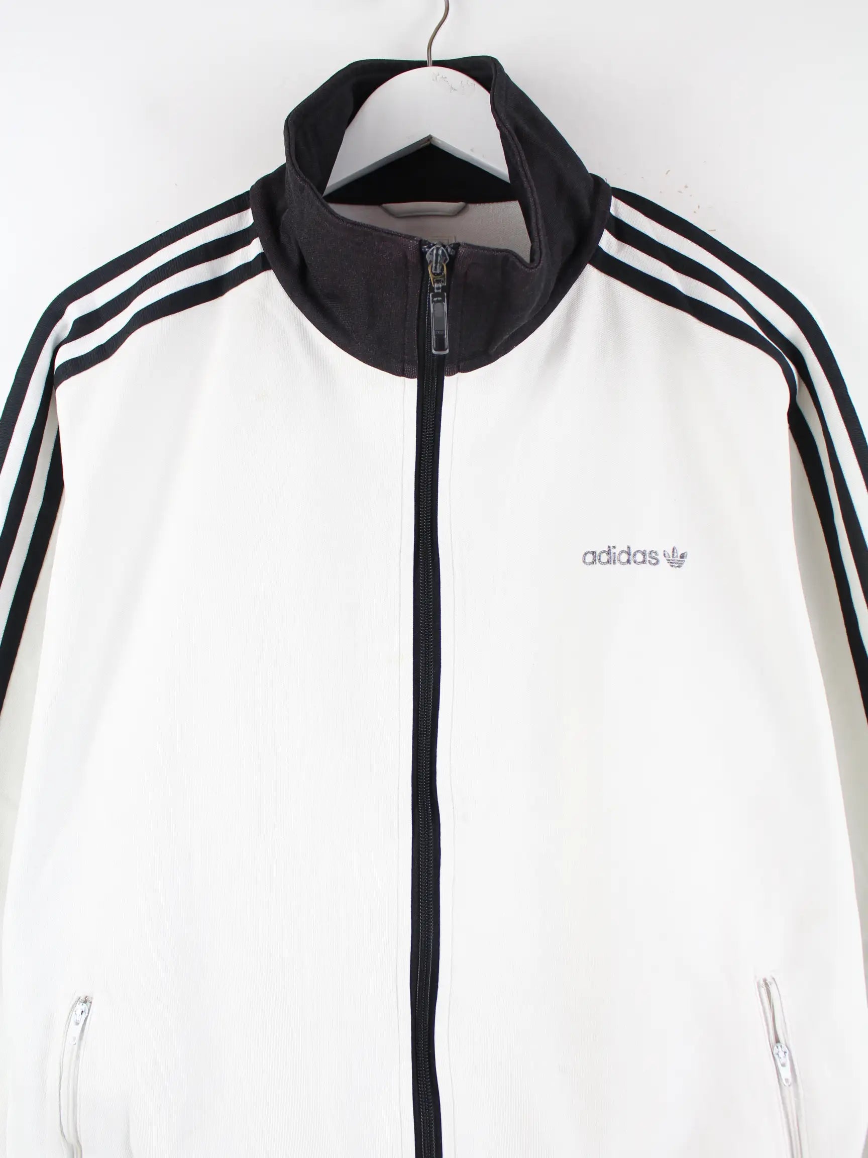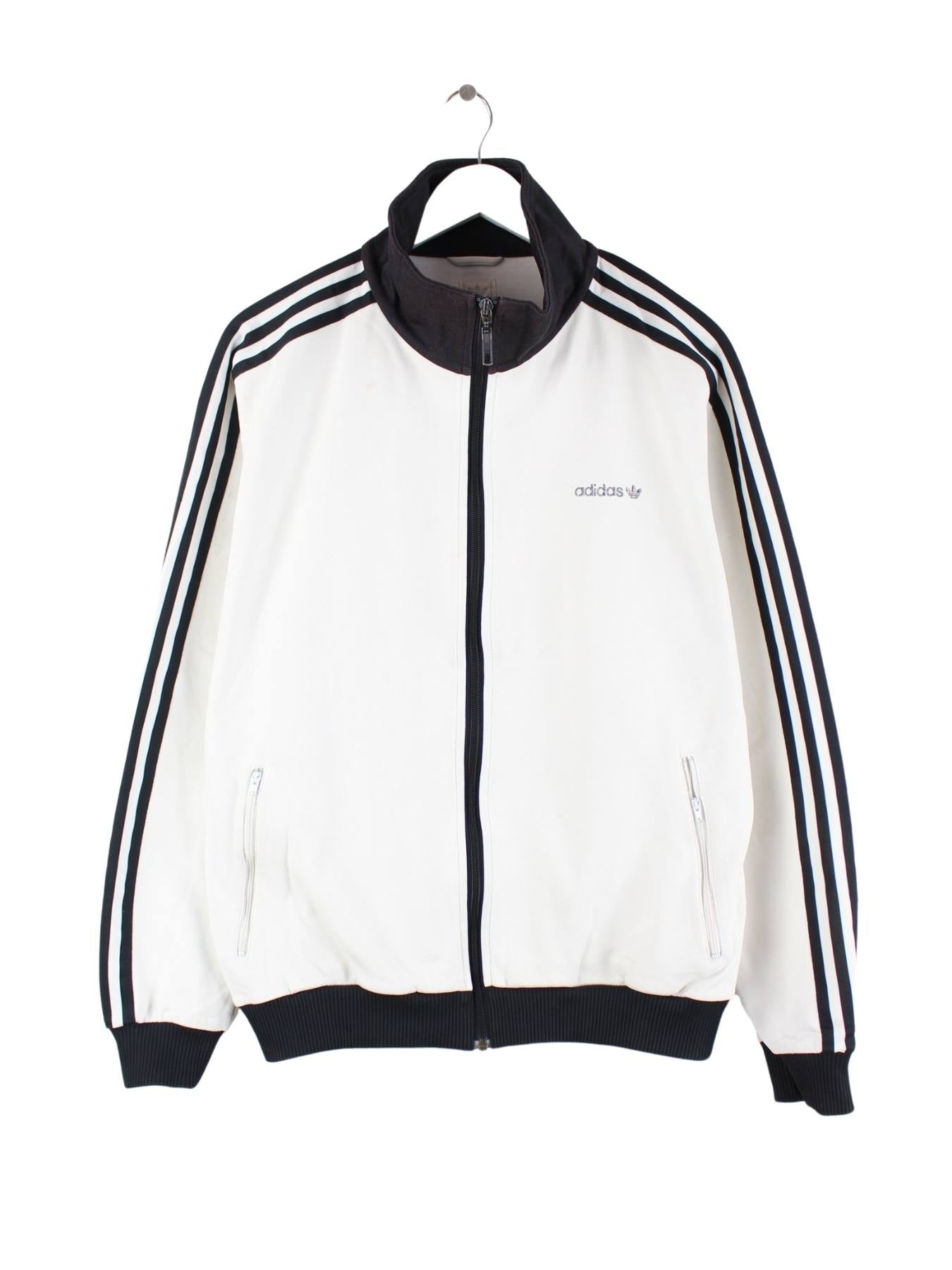 Trainingsjacke vom Label Adidas in Größe L. Sie ist aus Synthetik produziert und in Weiß zu haben.